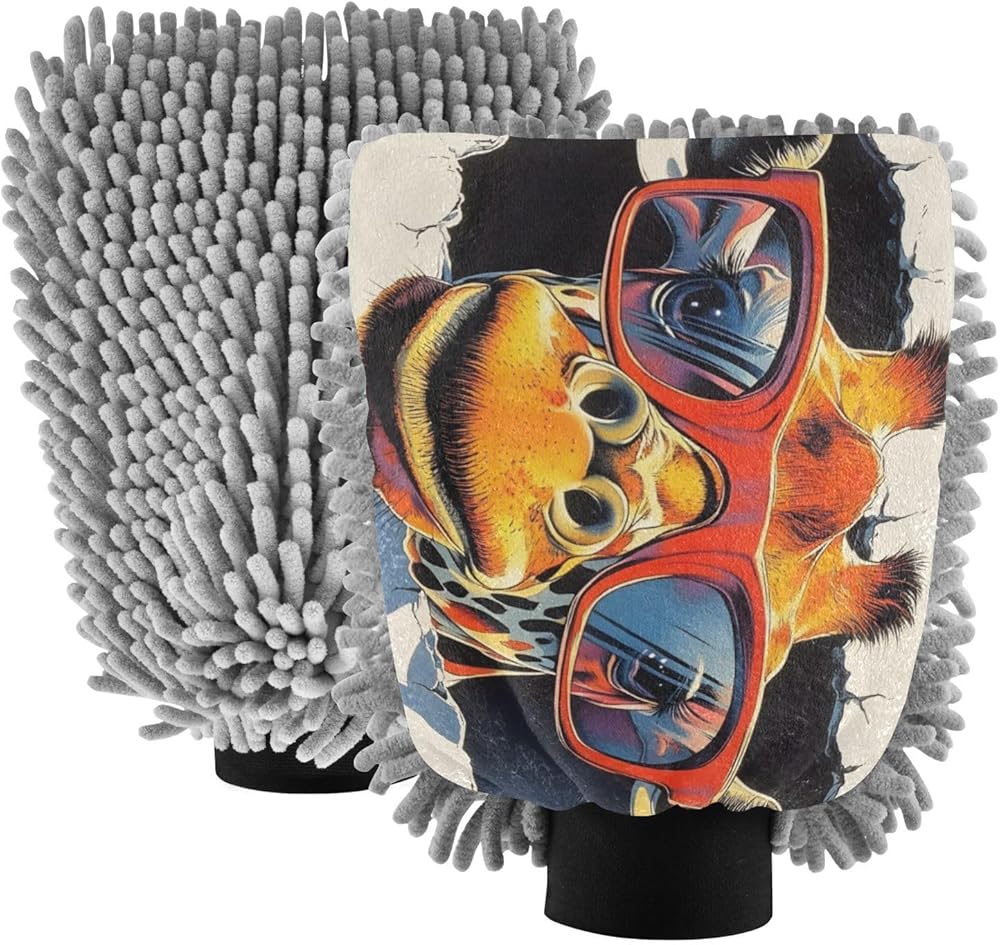 قفاز غسيل السيارات من AIXIWAWA، قفاز غسيل مقاوم للخدش، ماص للماء، 2 عبوة زرافة كبيرة بطباعة جدارية in Kuwait
