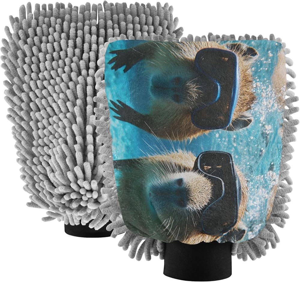 قفاز غسيل السيارات من AIXIWAWA، قفاز غسيل خالٍ من الخدوش، ماص للماء، 2 عبوة كبيرة مطبوع عليها كابيبارا للغوص in Kuwait