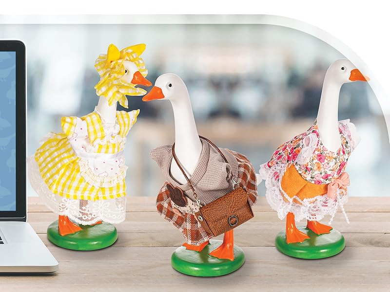 أوزة مكتب مع مجموعة من ثلاثة ملابس أوزة مكتبية مقاس 7 بوصات، تمثال أوزة سطح المكتب مع قاعدة مرجحة، ديكور منزلي لطيف، ديكور مكتب مكتب، هدايا عيد ميلاد للنساء (مجموعة ب) in Kuwait