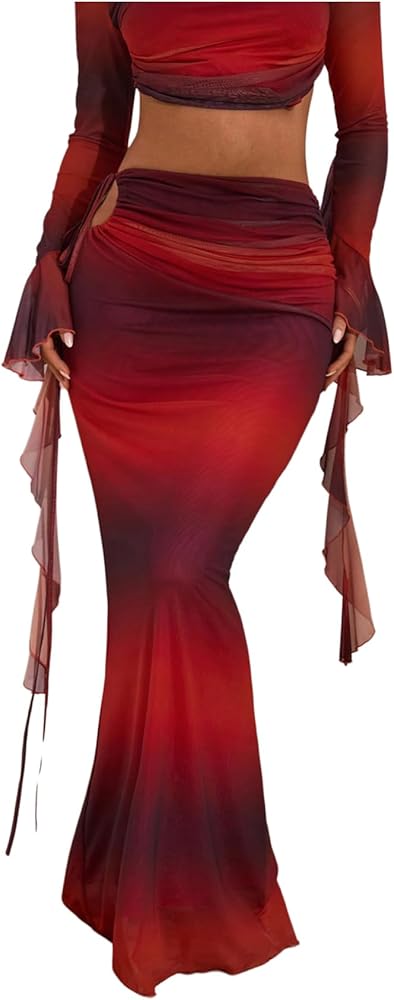• Features: bodycon fishtail skirt for women, tie dye mesh, ruched sides, cut out tie side, flared hem, chic and elegant, y2k aesthetic