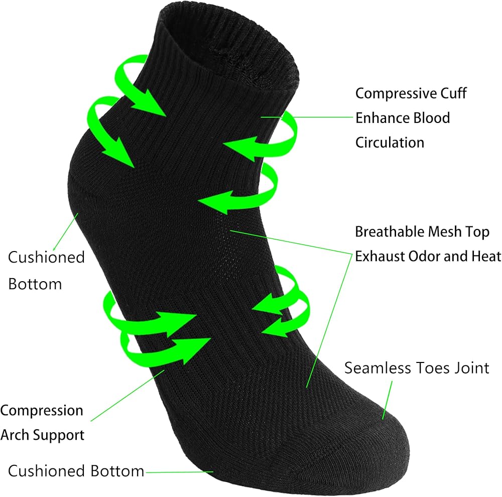 ضغط خفيف - تم تصميم الجوارب الرياضية للعداء بضغط خفيف على دعم القوس وجزء الساق. لن تنزلق أو تلتف أو تتدحرج في حذائك ولكنها ليست ضيقة للغاية بحيث لا تترك علامات على بشرتك. فقط أعطيك الدعم اللازم وأقصى قدر من الراحة.