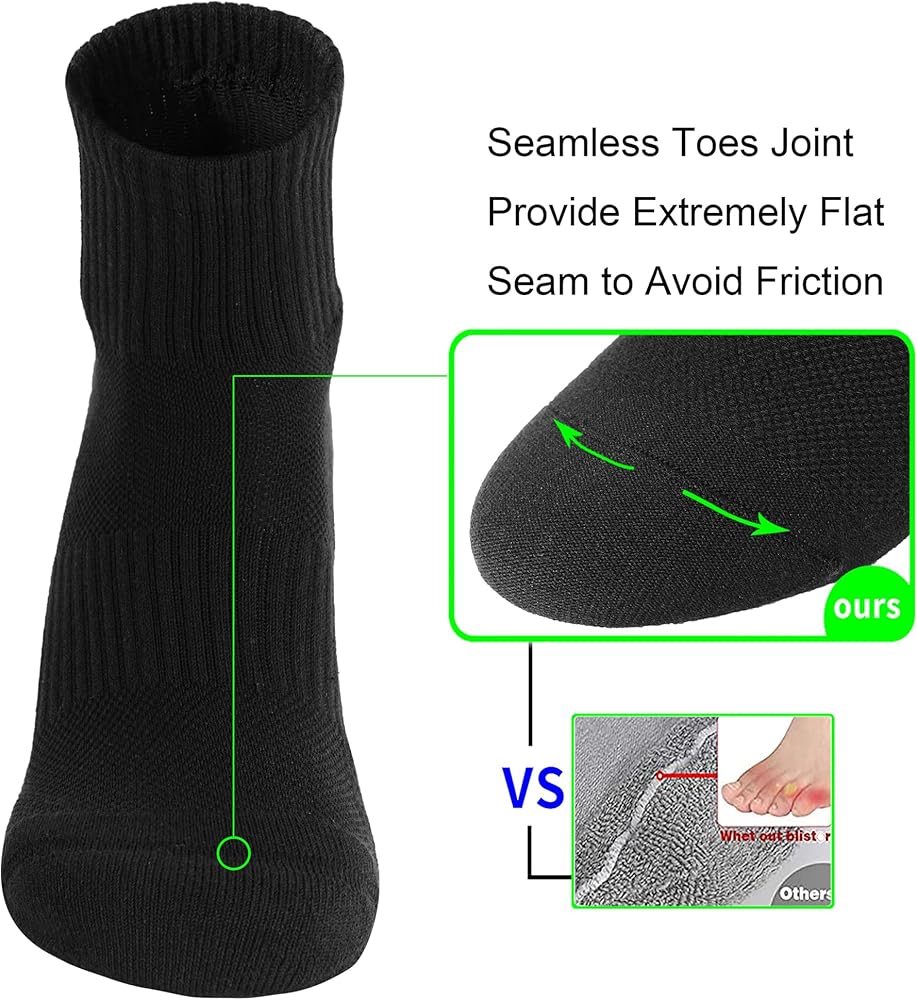 خياطة وتبطين - تتميز جوارب الجري المقاومة للتقرحات لدينا بمفاصل أصابع مسطحة مذهلة وجزء سفلي مبطن ناعم باستخدام آلة الحياكة الأكثر تطورًا المرتبطة تلقائيًا. توفر لك الجوارب السميكة الحماية الكاملة من أصابع القدم إلى الكعب وتبقيك دافئًا. كما يزيد الجزء السفلي من الوبر من امتصاص الرطوبة.