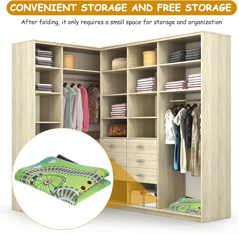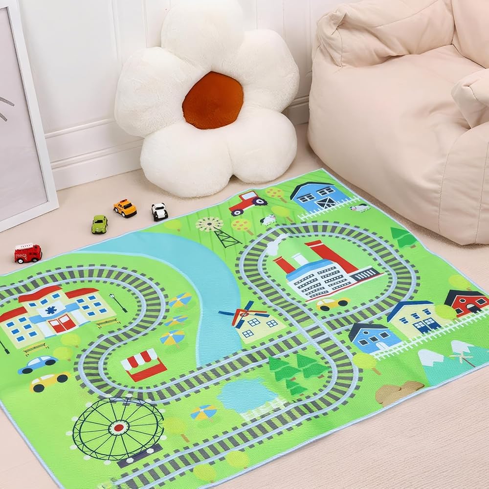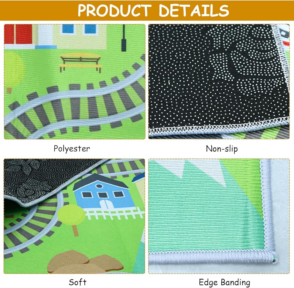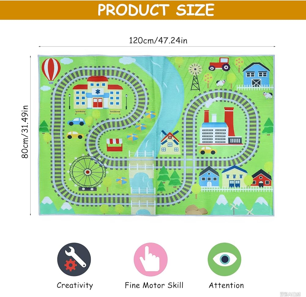 🌈【Multi-Scene Design, Cultivate Imagination】The kids game carpet is designed with an exciting railway theme to let your childs imagination fly. With multiple scenarios and paths, its more than just a play mat; its a way to have imaginative adventures that help your child develop cognitive skills.