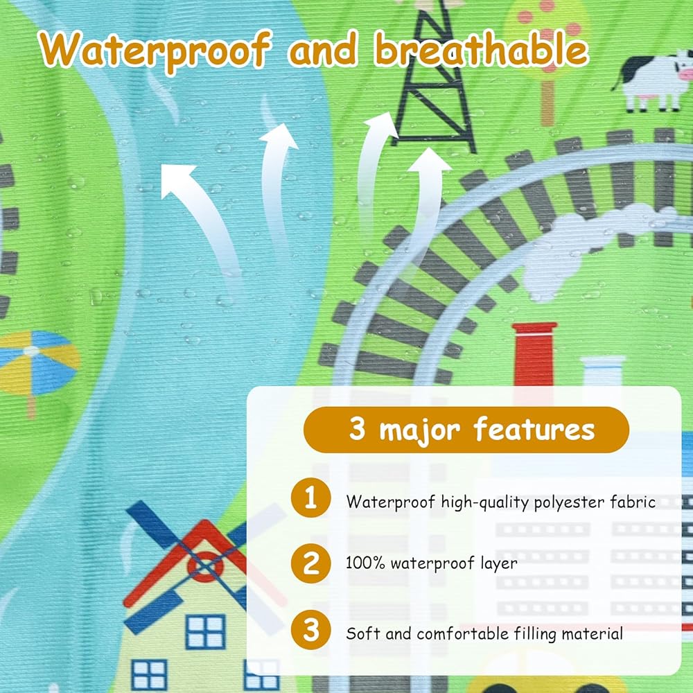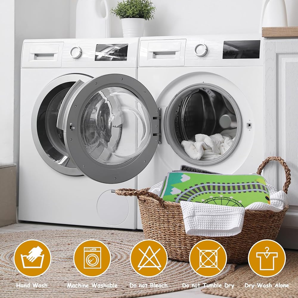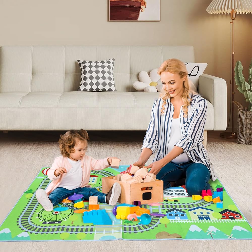 🌈【Multi-Scene Design, Cultivate Imagination】The kids game carpet is designed with an exciting railway theme to let your childs imagination fly. With multiple scenarios and paths, its more than just a play mat; its a way to have imaginative adventures that help your child develop cognitive skills.