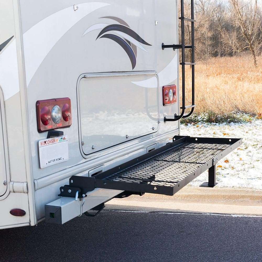 التركيب: مجموعة التثبيت متضمنة لتأمين رف التخزين على الإطار الخلفي مقاس 4 بوصات لمركبتك الترفيهية أو العربة أو العجلة الخامسة؛ ولا تناسب ممتص الصدمات مقاس 4.5 بوصة