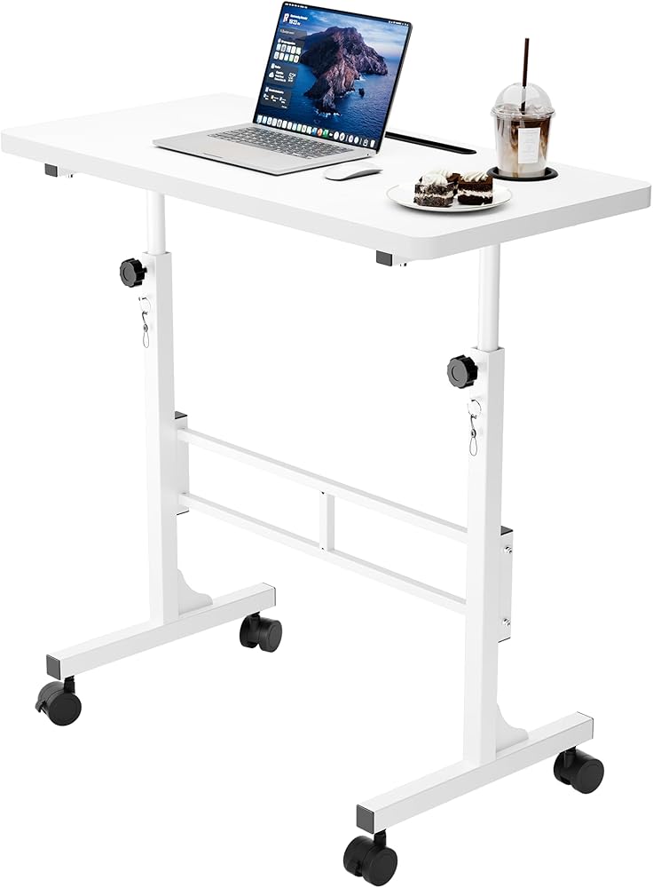 Homall small standing desk,Adjustable Height Moving Desk with Lockable Wheels,Portable Laptop Computer Workstation with Walking Pad Treadmill