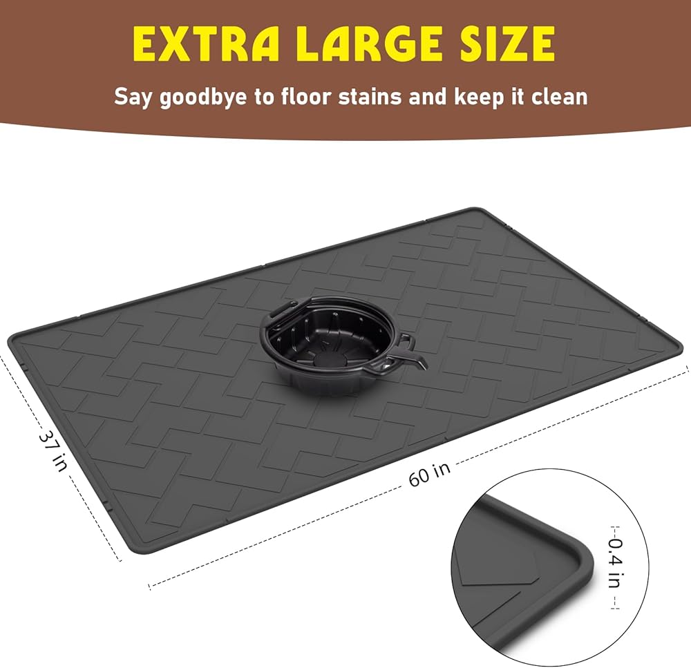 حصيرة انسكاب الزيت للمرآب، سجادة تغيير الزيت TPE شديدة التحمل مقاس 60 بوصة × 37 بوصة مع حافة مرتفعة، وعاء تصريف الزيت قابل لإعادة الاستخدام، مقاوم للماء، مقاوم للزيوت، غير قابل للانزلاق تحت سجادة السيارة، يحمي سطح المرآب من الانسكاب والبقع