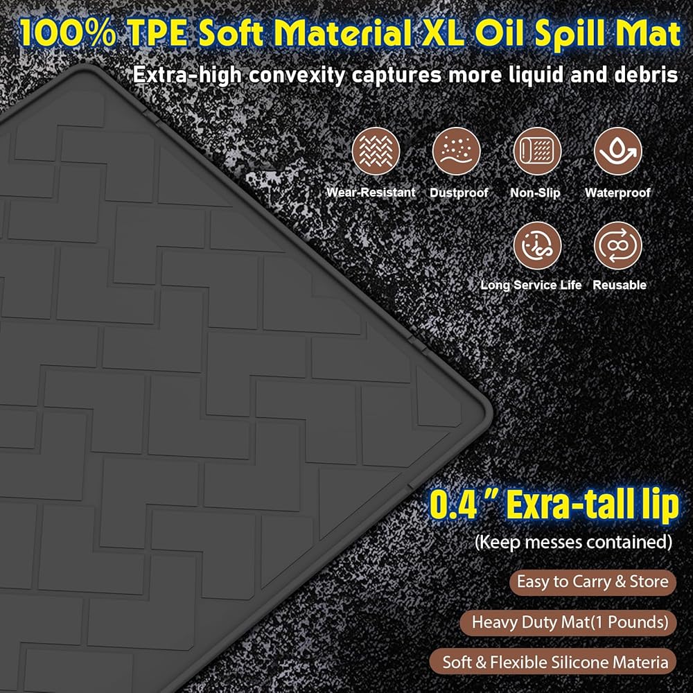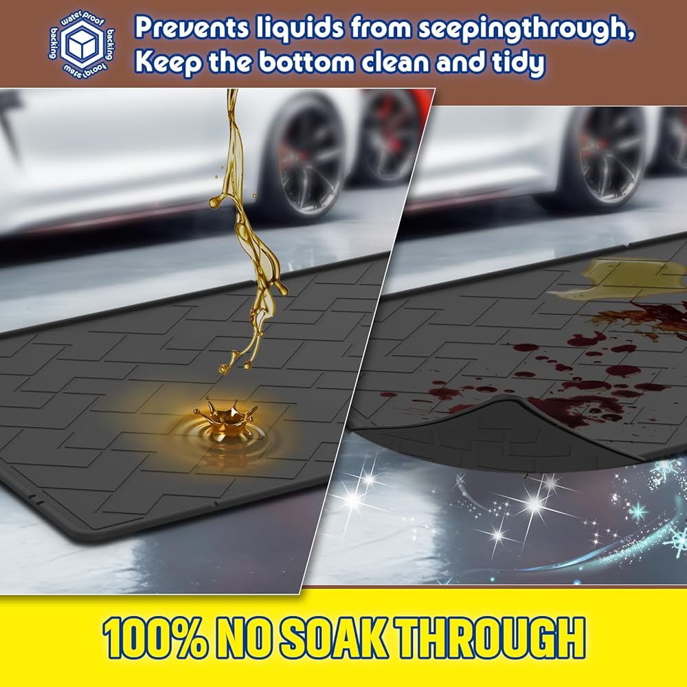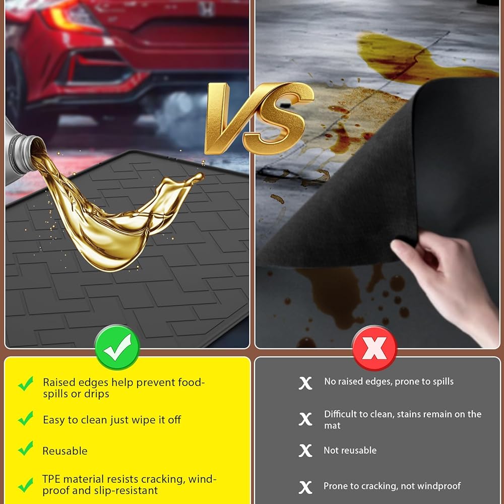 • 5 مقاومة للماء وغير قابلة للانزلاق ومتعددة الاستخدامات، هيكل مقاوم للماء بنسبة 100% يحجب الزيت تمامًا، بينما يحافظ الجزء الخلفي غير القابل للانزلاق على ثبات السجادة في مكانها بشكل آمن. مثالية للسيارات والدراجات النارية ومعدات العشب والمولدات وأرضيات الورش.