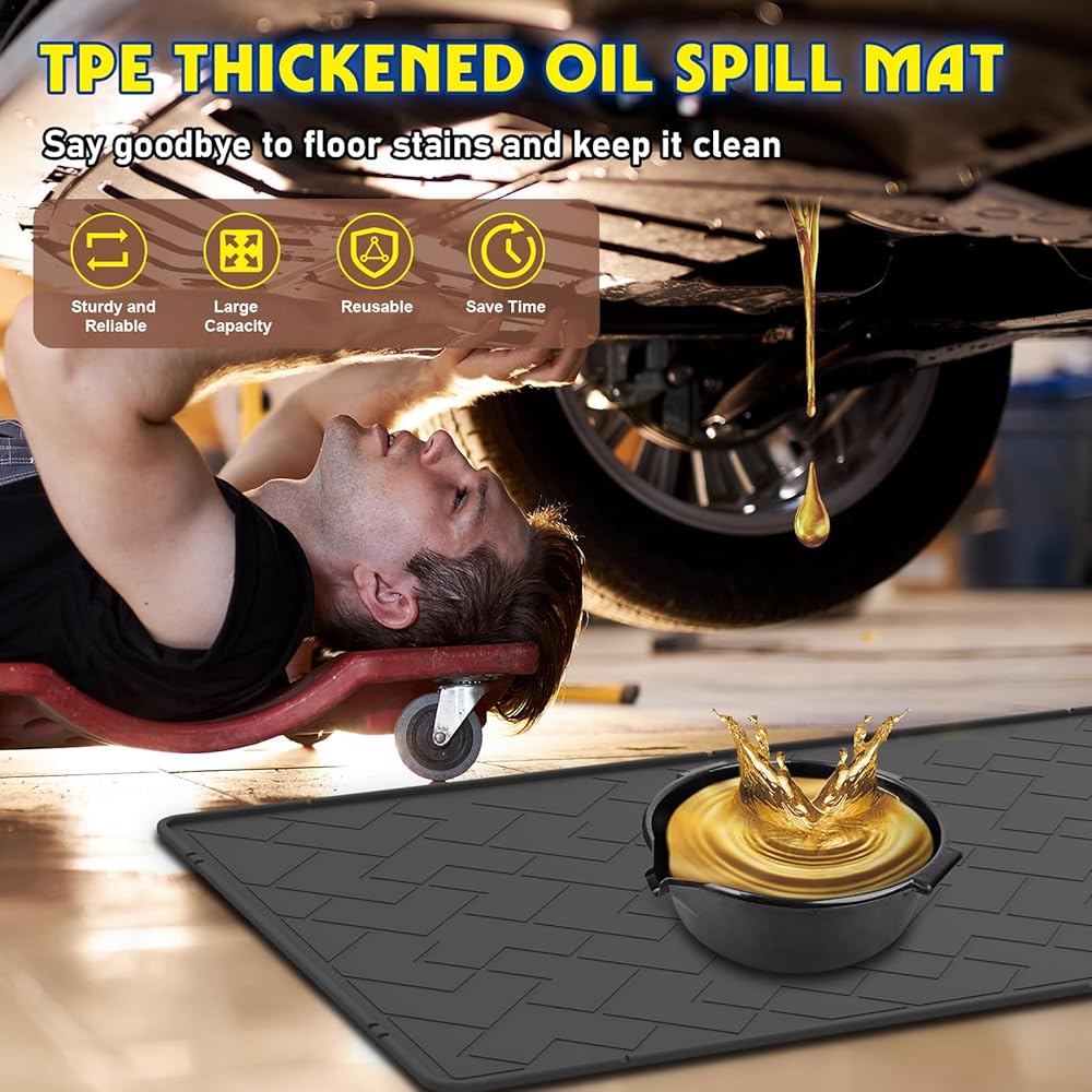 • 1 حصيرة انسكاب الزيت TPE شديدة التحمل - مصممة لتغييرات الزيت مصنوعة من مادة TPE الصناعية، وقد تم تصميم حصيرة انسكاب الزيت شديدة التحمل هذه للتعامل مع زيت المحرك والمبرد وسائل الفرامل والبنزين والمزيد. مثالي لتغيير زيت المرآب والإصلاحات وصيانة المركبات.