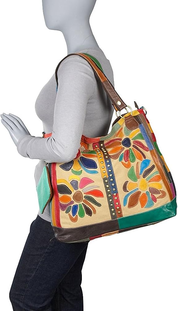 Dimensions: 18.5 in. L x 15.25 in. H x 5 in. W NOTE: Due to the multicolored nature of this handbag, the product you receive may differ slightly from the product displayed in the picture.