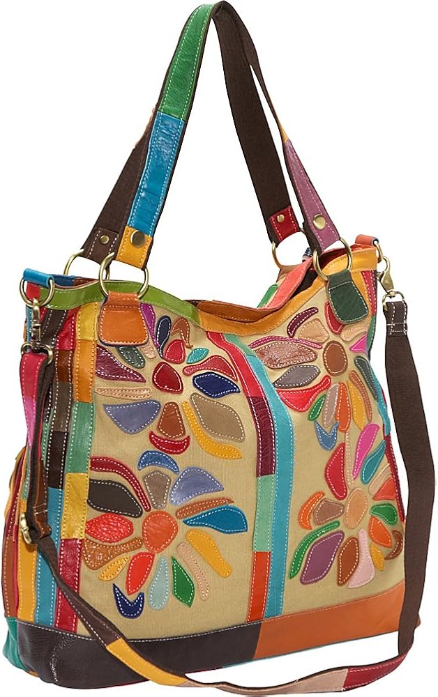 This beautifully handcrafted and multi-colored shoulder/tote bag is sure to be the refreshing eye-catcher to your collection. Every inch is uniquely designed with origami-styled floral layout over canvas - the vivid patchwork is dramatic and fun!