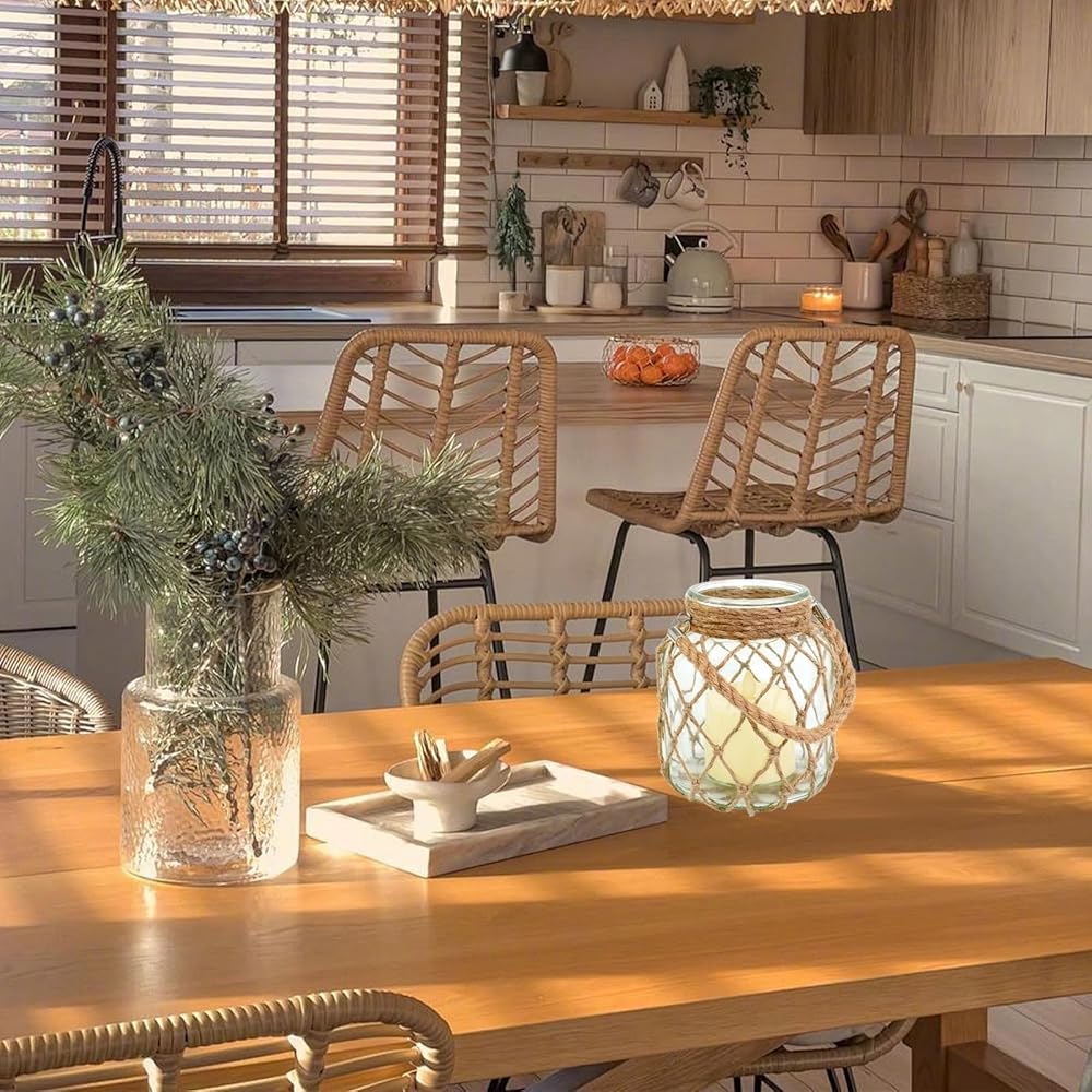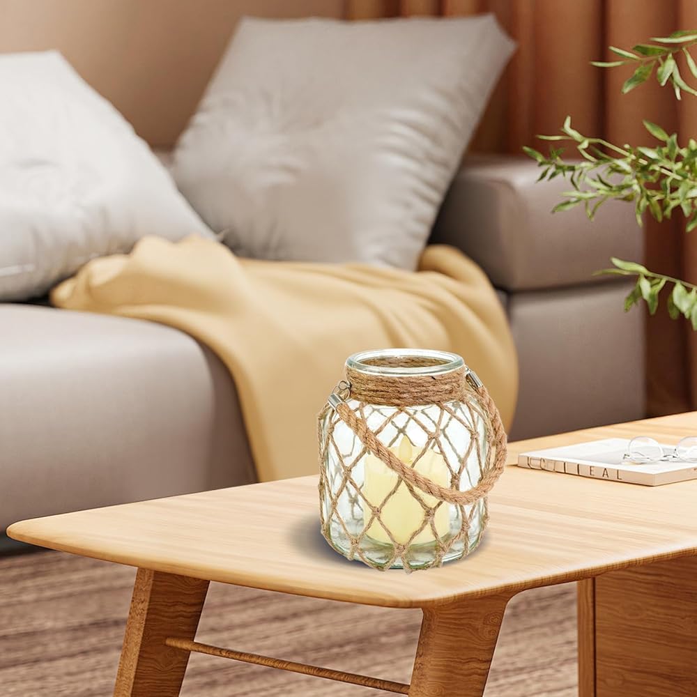 • مظهر ريفي وأنيق: تتميز مجموعة فانوس الشموع البحرية هذه بحبل من الجوت ملفوف بأناقة حول برطمانات الماسون الزجاجية؛ مزيج من الزجاج الشفاف ومادة الجوت يعزز المظهر الداخلي بسحر ساحلي وريفي، مما يساعد فانوس الشموع البحري على إبراز جماليات الغرفة بشكل طبيعي