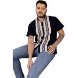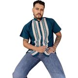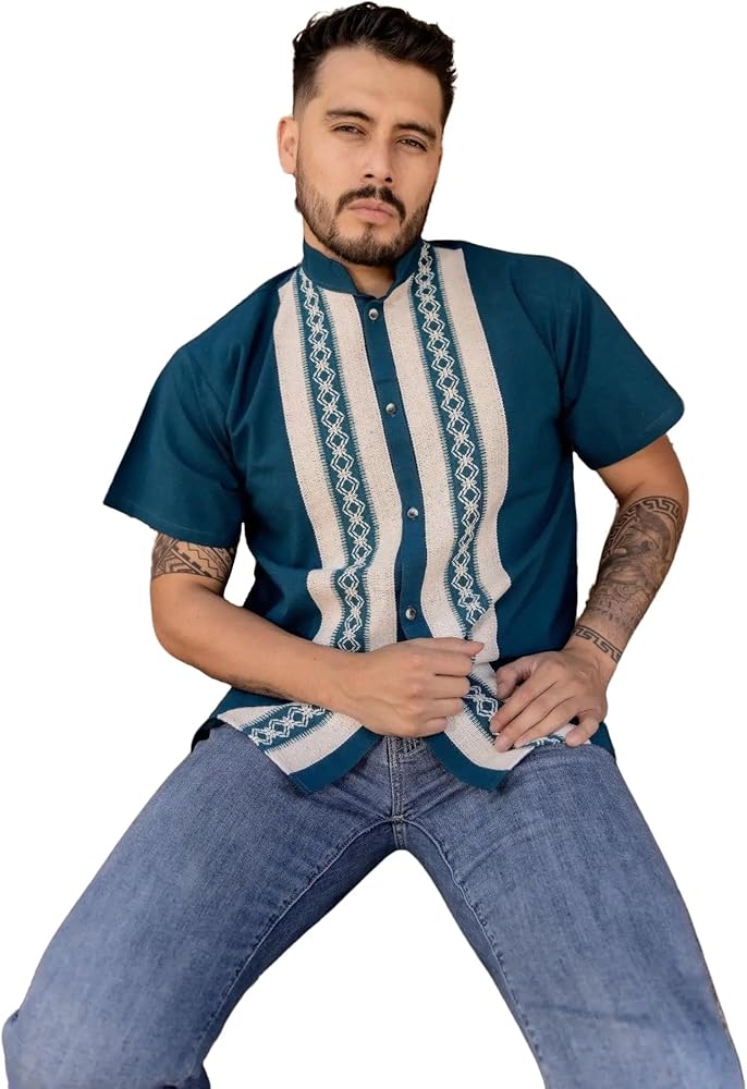 This beautiful Traditional Guayabera for Men has an ethnic embroidered design and adds a modern and sophisticated flare to your wardrobe. It is made out of fine Mexican cotton and is completely embroidered by artisanal Machine- hand manipulated. This elegant button up Shirt is perfect for special occasions such as Mexican Fiestas, Quinceañeras, Weddings, etc. This guayabera is made by Mexican Artisans in Chiapas, Mexico.
