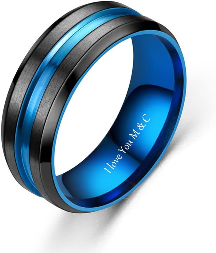 Customized Mens Tungsten Carbide Wedding Bands Comfort Fit Promise Rings for Him Engraved Inside and Outside Rings for Men Optional Silver /Black /Blue Stainless Steel Engagement Tungsten Rings for Men Size 6-12