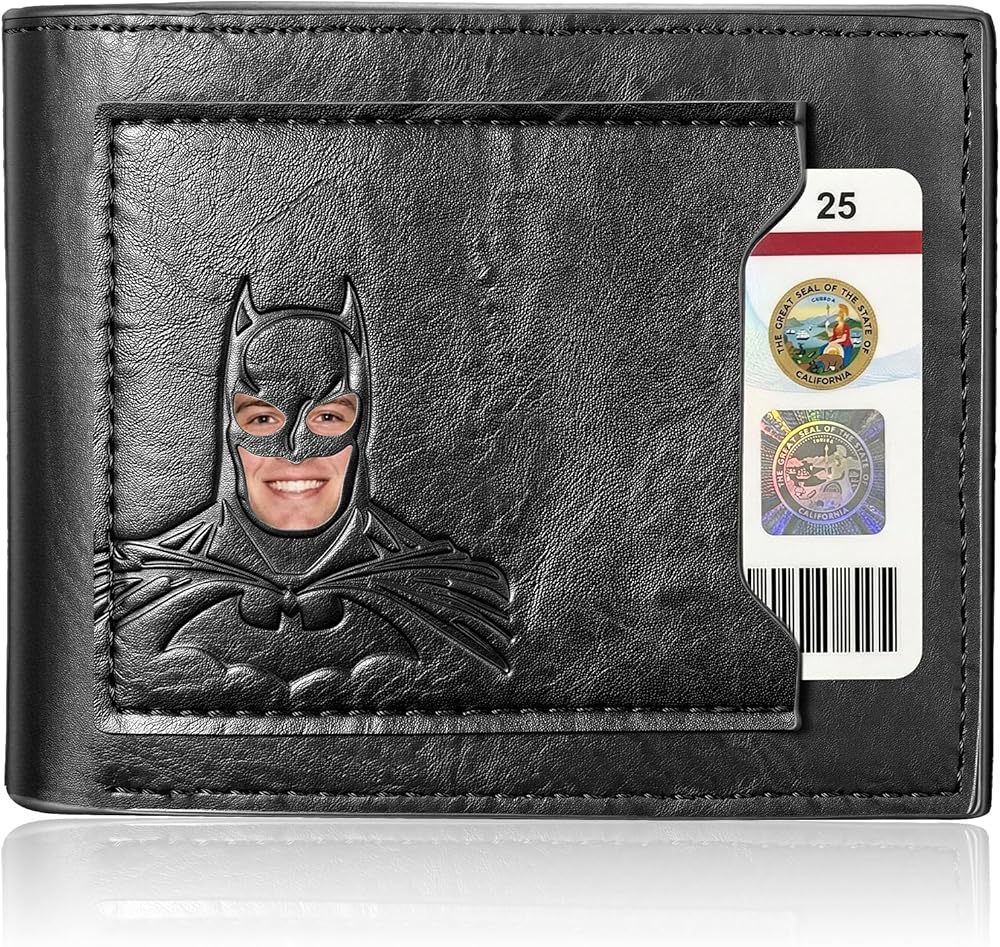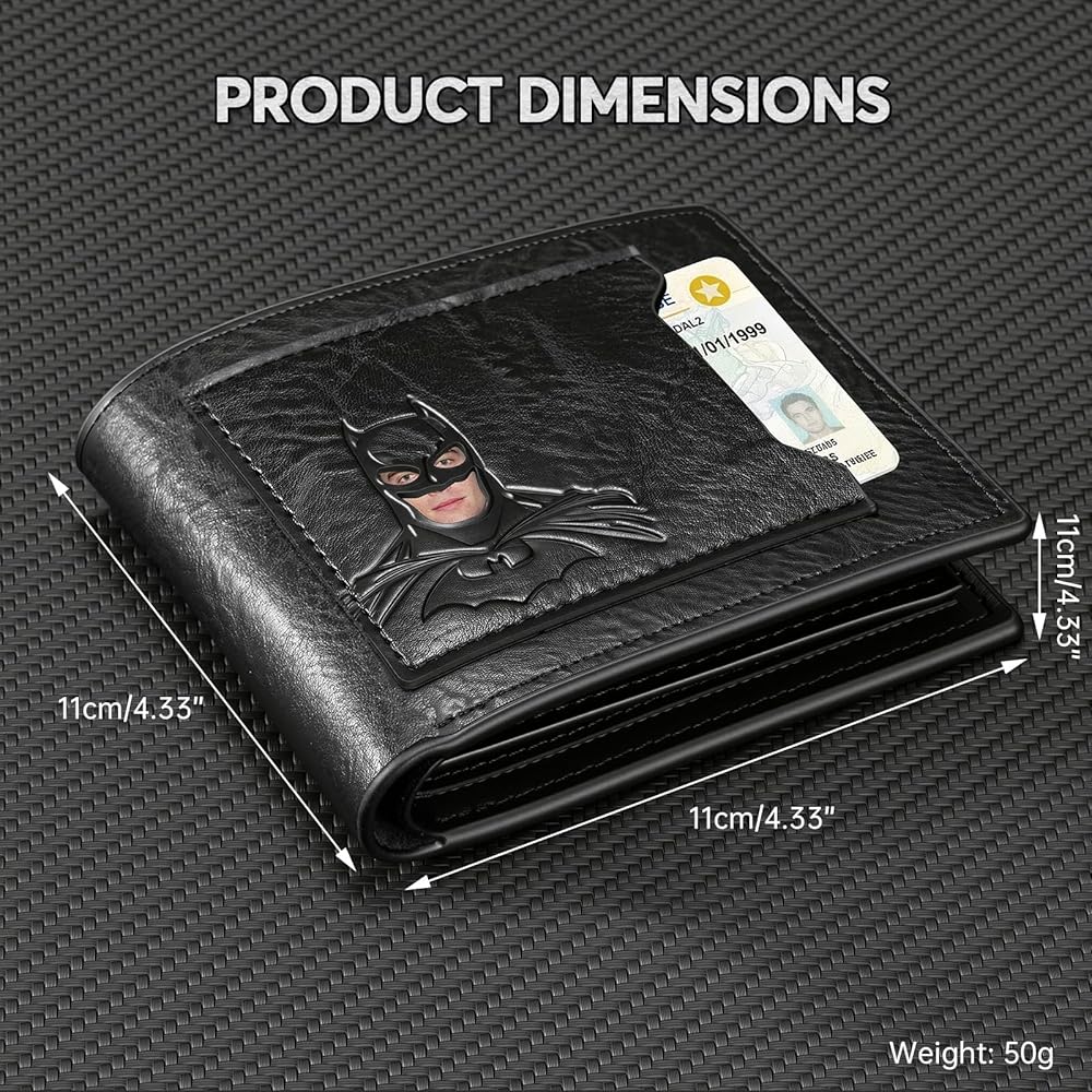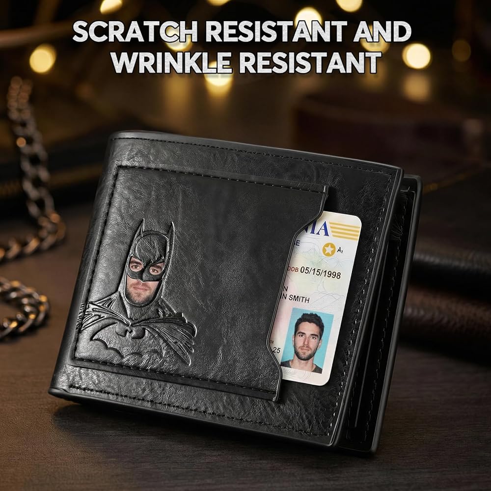 Leather Bat Wallet for Men Valentines day gift for him Personalized Gift for Husband Unique Birthday Holiday Gifts Best for Anniversary | Hero ID with 3D Metalic Superhero Mask (Bifold )