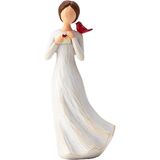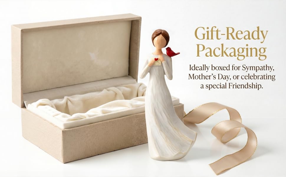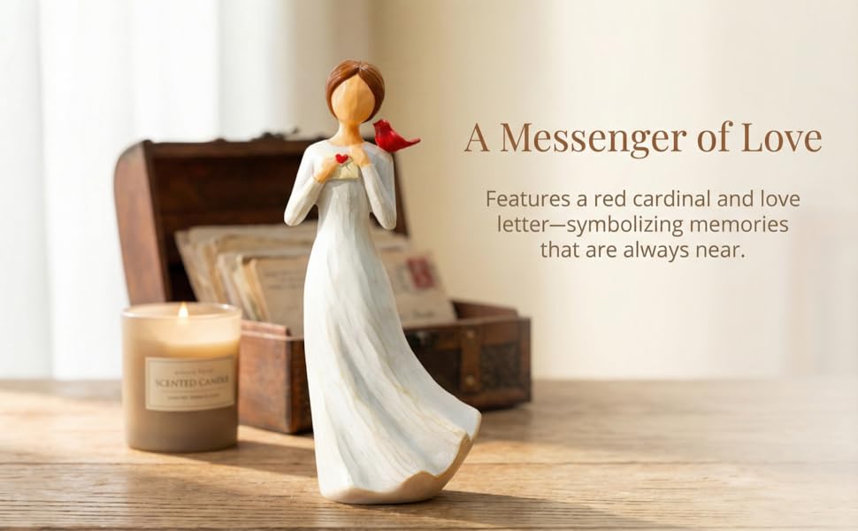 رمز الحب والراحة الأبدية: يتميز هذا التمثال المرسوم يدويًا بامرأة لطيفة تحمل حرفًا بقلب، مصحوبة بكاردينال أحمر ساطع مجثم على كتفها. في الفولكلور، يُنظر إلى الكرادلة على أنهم رسل روحيون من السماء، مما يدل على أن "الملائكة قريبة". إنه بمثابة تذكير مؤثر لشخص عزيز مفقود أو رمز للمودة العميقة لشخص بعيد.