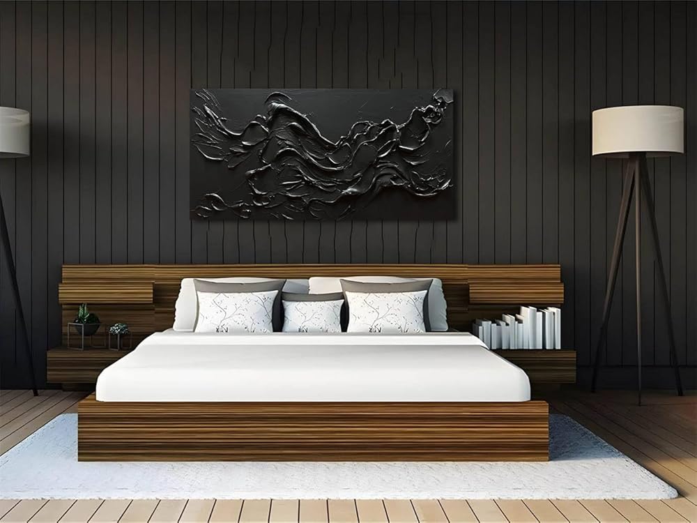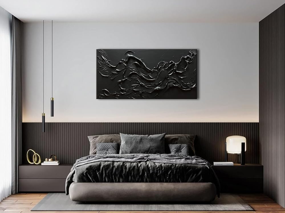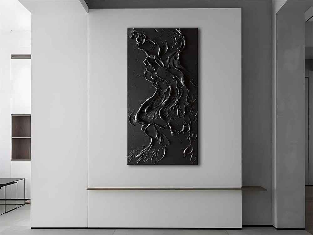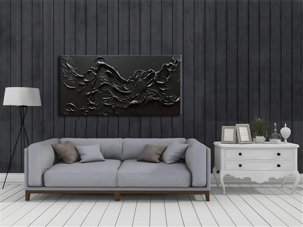 Transform your walls into a gallery with this black painting. It's bold pure black color and textured surface create a striking visual effect, making it a standout piece in any space