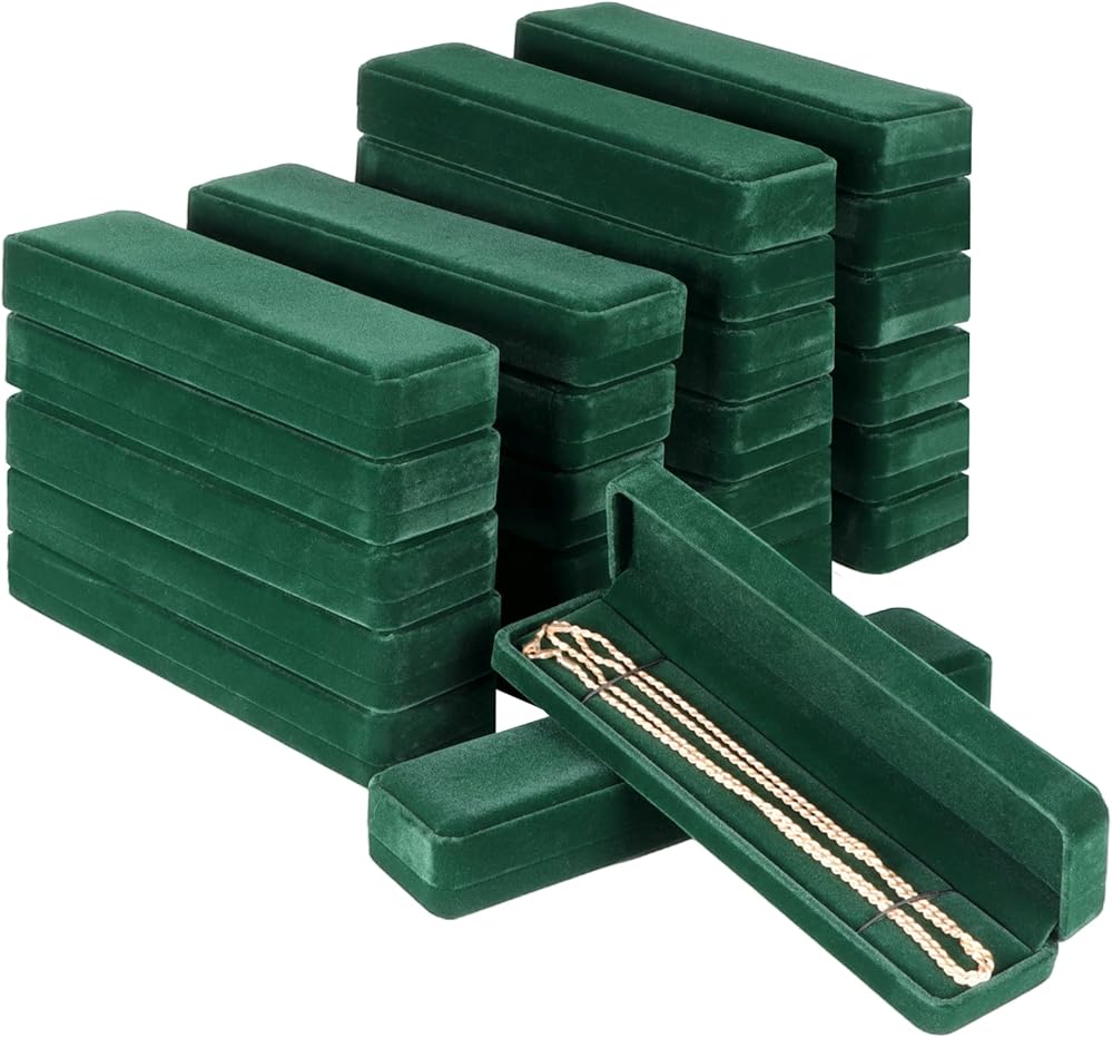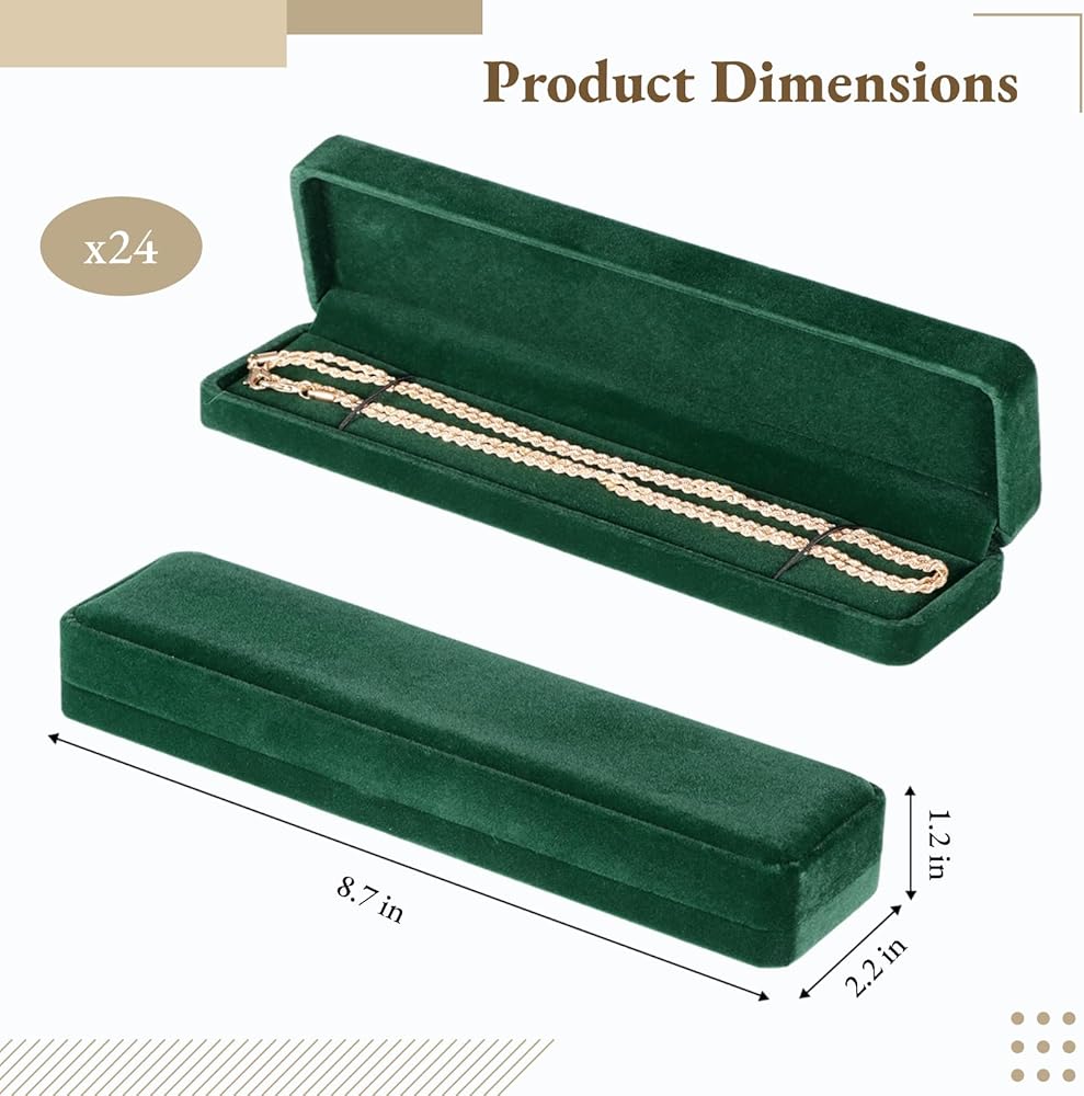 24 قطعة من صناديق الأساور المخملية، صندوق عرض مجوهرات طويل 8.7 بوصة، صندوق هدايا مجوهرات مخملي أخضر، حقيبة تخزين المجوهرات للاستخدام التجاري