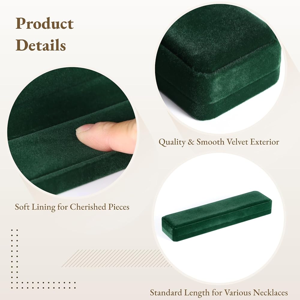 • Stylish Look: These boxes showcase a green hue displaying sophistication and refinement; a soft velvet exterior delivers a comforting experience, whilst a refined look enhances your jewelry presentation.