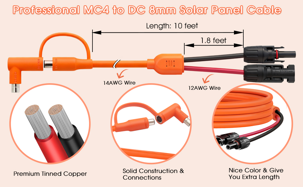 أقصى قدر من الكفاءة والتوصيلات الآمنة: تم تصميمه باستخدام أسلاك نحاسية 12AWG و14AWG لتقليل انخفاض الجهد الكهربي وسرعة الشحن المثالية، ومصمم ليتحمل الشمس والمطر، ويتميز سلك التمديد الخاص بنا بموصلات MC4 محكمة الغلق تمنع دخول الرطوبة.
