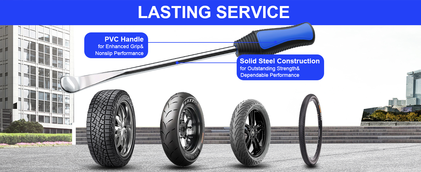 【مغرفة أطول لمزيد من الرفع】: توفر رافعة الإطار مقاس 11.5 بوصة قوة استثنائية، مما يجعل من السهل إزالة الإطارات دون إتلاف الأنبوب الداخلي. يضمن المقبض المصمم هندسيًا قبضة مريحة، مما يقلل من تعب اليد أثناء الاستخدام