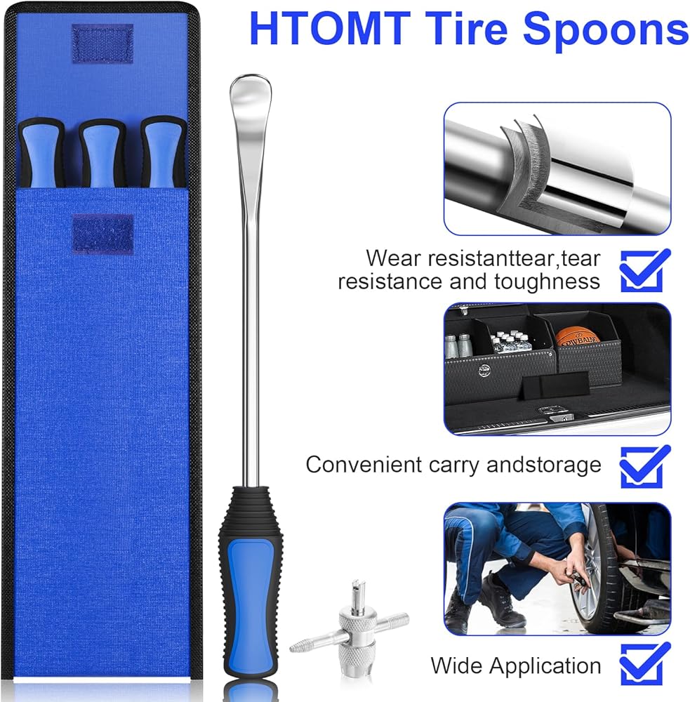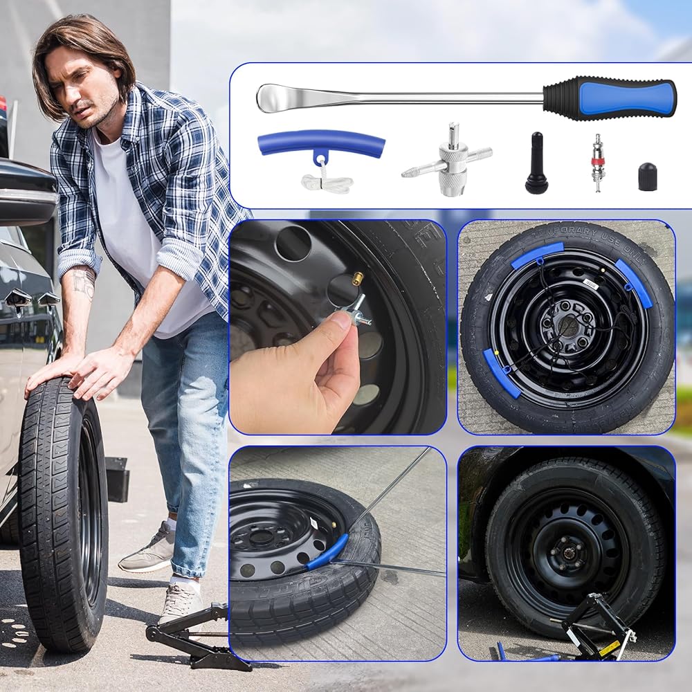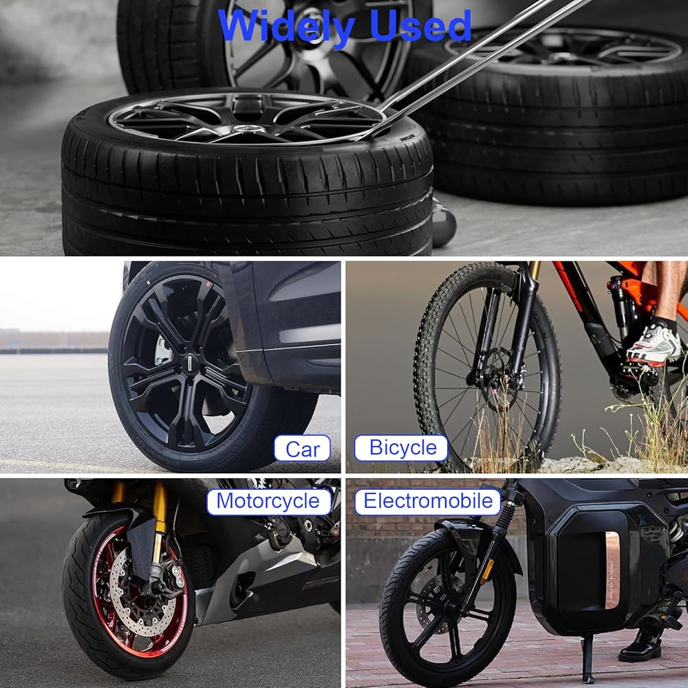 【حماية شاملة】: مجهزة بواقي الحواف وأداة صمام، تحمي هذه المجموعة الحواف والصمامات من التلف. يضمن تصميمه سهل الاستخدام إزالة وتركيب الإطارات بشكل آمن وفعال