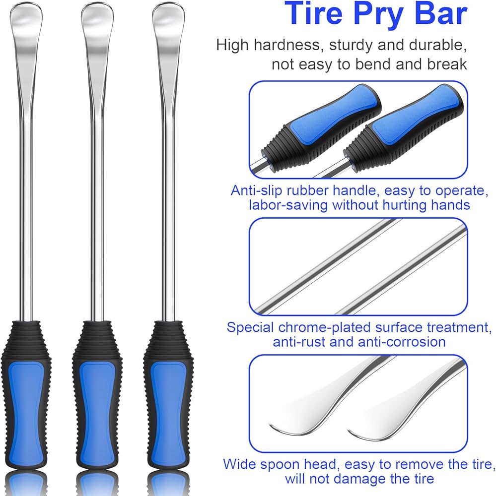 【مادة عالية الجودة】: مصنوعة من الفولاذ عالي الكربون (CrV)، مع طلاء كروم مقاوم للتآكل، تم تصميم هذه المجموعة لتحمل الظروف القاسية والاستخدام طويل الأمد دون الانحناء أو الكسر. فهو يوفر أداءً موثوقًا لجميع احتياجاتك في تغيير الإطارات