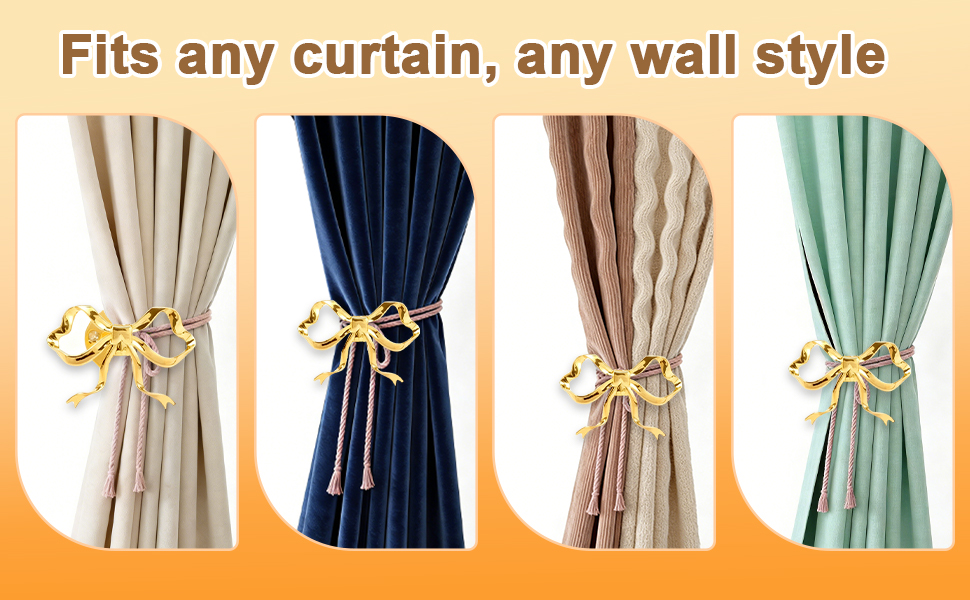 【كلاهما عملي وزخرفي】 يمكن لربطات الستارة تعليق الستائر بإحكام، وتعتمد هيكلًا معدنيًا قويًا، ولها قدرة تحمل قوية، ويمكنها بسهولة إصلاح أقمشة الستائر ذات السُمك المختلفة، وليس من السهل أن تسقط أو تتدلى أو تتشوه أثناء الاستخدام؛ يمكن لتصميم القوس الفريد تزيين الستائر وستائر الأبواب وما إلى ذلك، وحقن عناصر رائعة وأنيقة في غرف المعيشة وغرف النوم والمساحات الأخرى، وتحقيق قيمة مزدوجة من الوظيفة والديكور، والتكيف مع مشاهد نمط المنزل المختلفة. إنها تعمل بشكل جميل كستارة سحب للخلف لأي غرفة.