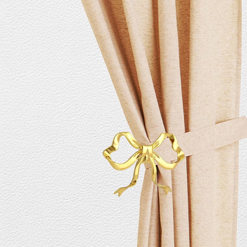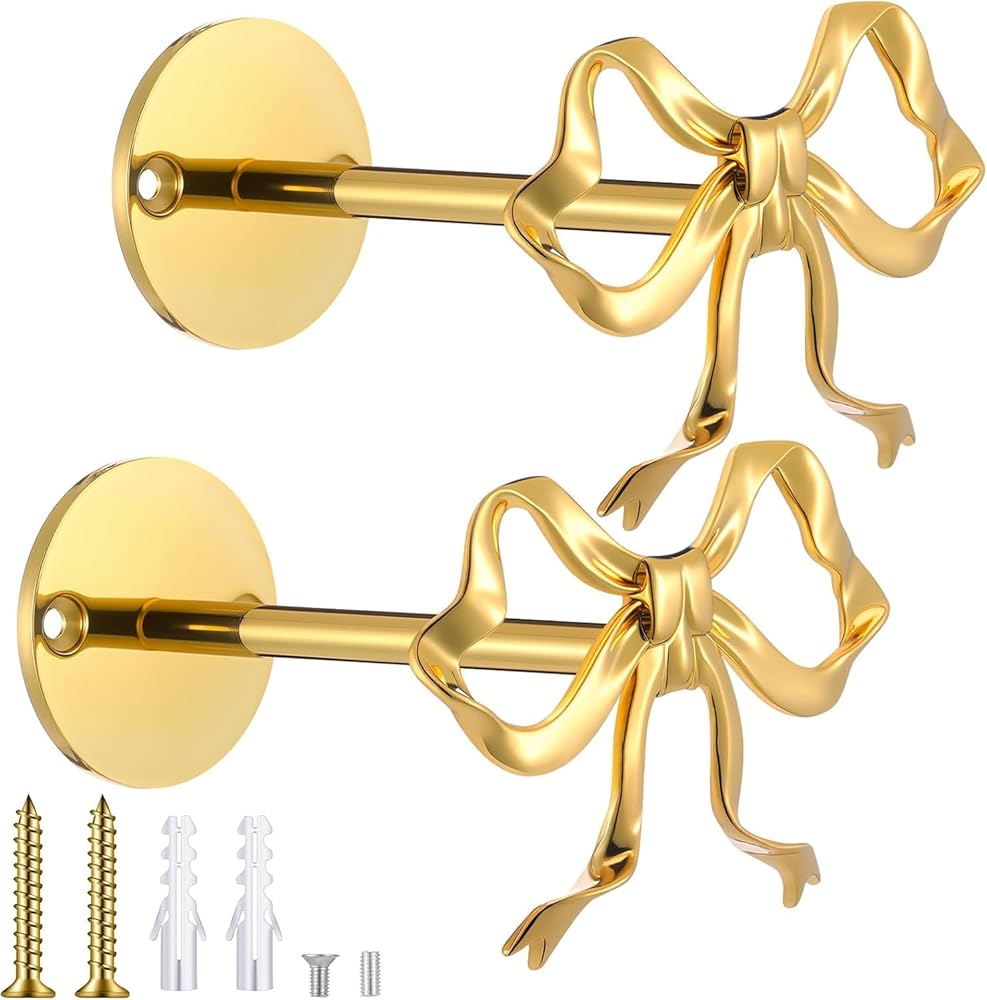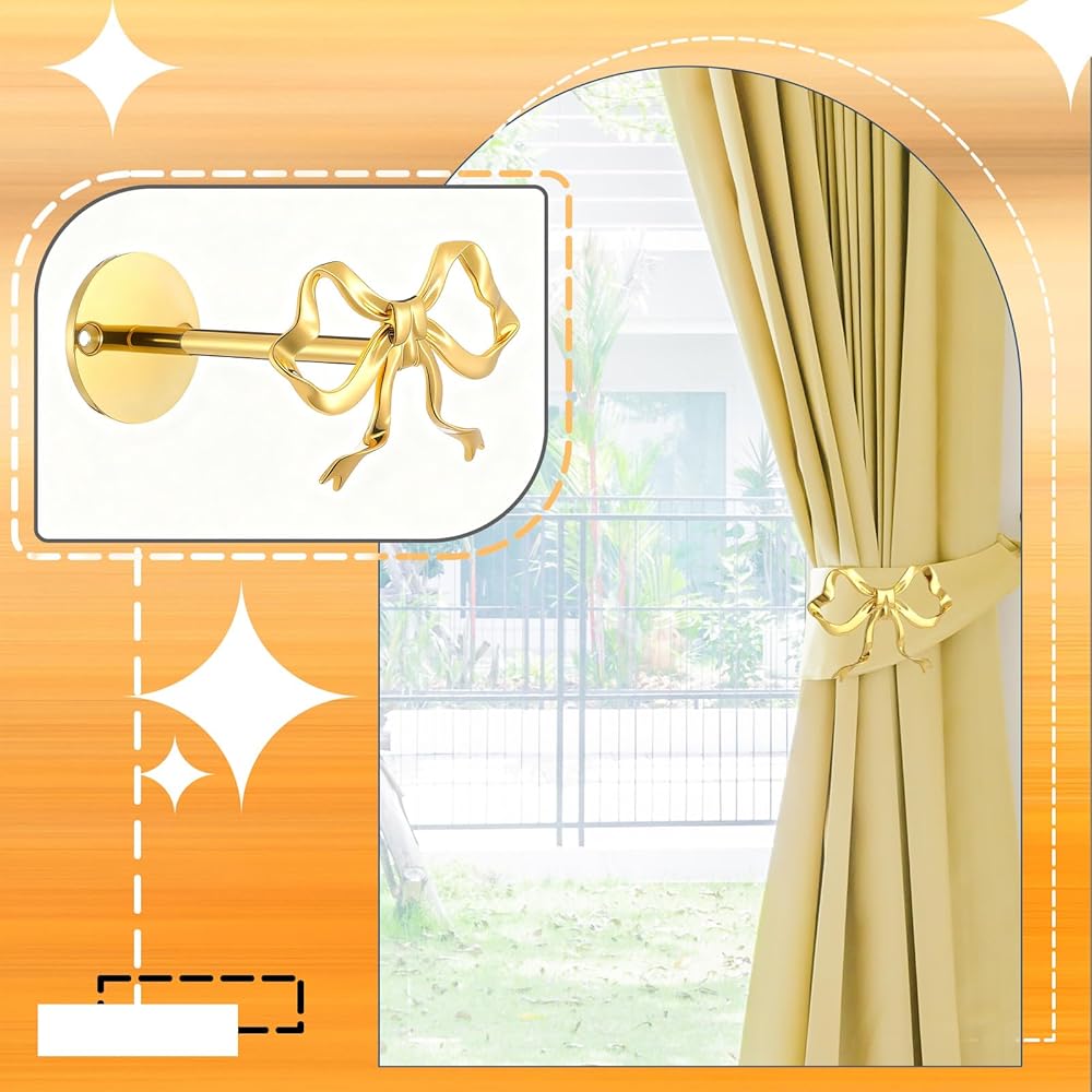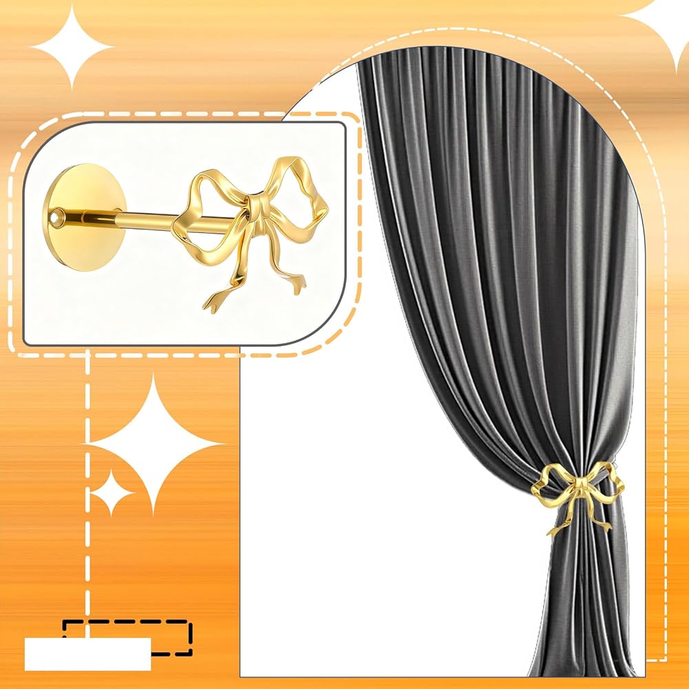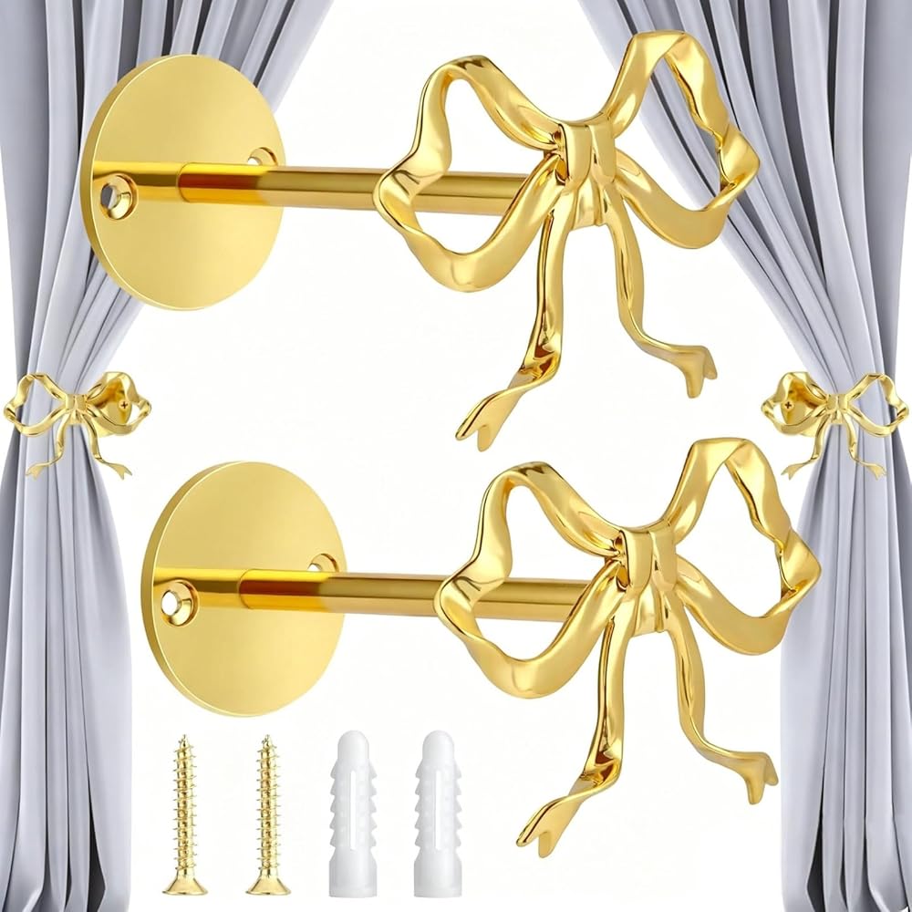 2 حزمة من حوامل ستائر القوس المعدنية، ستائر على شكل فيونكة ذهبية كبيرة مثبتة على الحائط، خطافات نافذة أنيقة للستائر، حوامل شديدة التحمل لغرفة المعيشة وغرفة النوم والمكتب وديكور المنزل