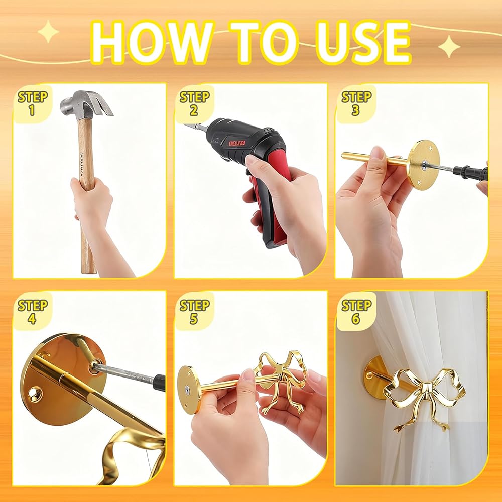 【سهل التركيب ولا داعي للقلق】 تصميم ديكور غرفة القوس بسيط، وتحتوي كل مجموعة على أربعة براغي مطلية لضمان التركيب السلس؛ يتطابق اللون الذهبي للبراغي وعوائق الستائر مع الملحقات الذهبية، مما يخلق إحساسًا عامًا بالفخامة. ليست هناك حاجة لأدوات معقدة أثناء التثبيت، والعملية بسيطة وسهلة الاستخدام. تم تصميم انحناء وحجم الخطاف بعناية لمنع الانزلاق والإزاحة بسهولة أثناء الاستخدام، وتحقيق التوازن بين التطبيق العملي والراحة.