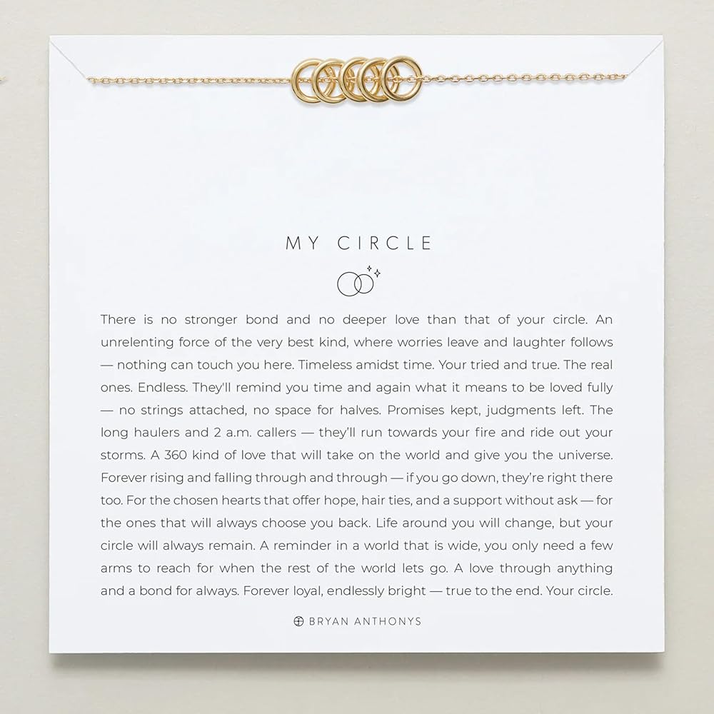 رمز دائرتك: تمثل هذه القلادة الرابطة غير القابلة للكسر للأشخاص الذين اخترتهم، الأشخاص الذين يظهرون ويقفون بثبات ويحبون دون شروط. تذكير خالد بأنه بغض النظر عن المكان الذي تأخذك إليه الحياة، فإن دائرتك تظل ثابتة ومخلصة ومتصلة إلى الأبد.