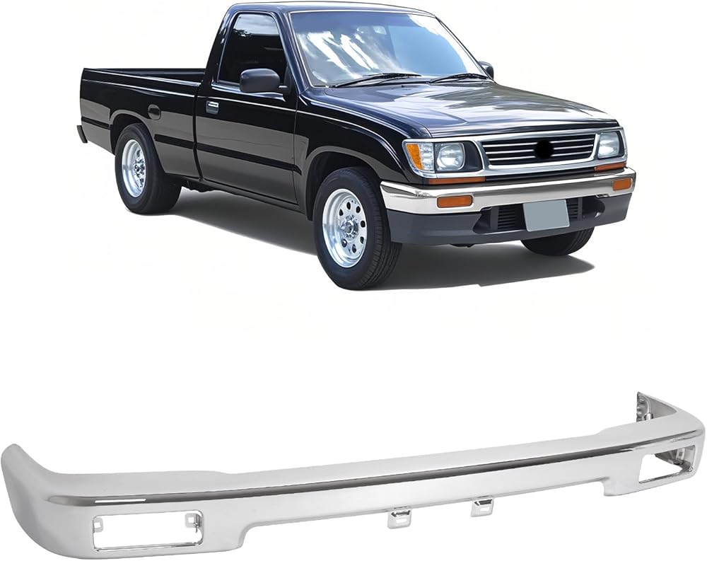 المصد الأمامي KUAFU متوافق مع قاعدة بيك اب تويوتا 1989-1995 DLX SR5 2WD مع توفير لوحة الترخيص، استبدال فتحات مصباح الإشارة لـ TO1002102، 5210135070 شريط وجه ممتص الصدمات فضي