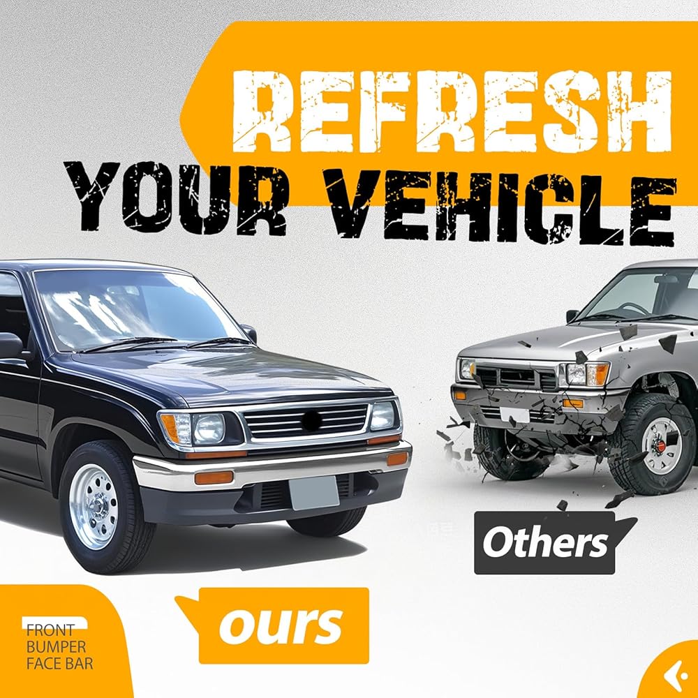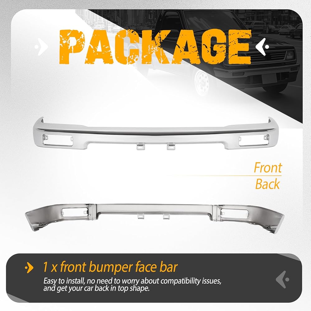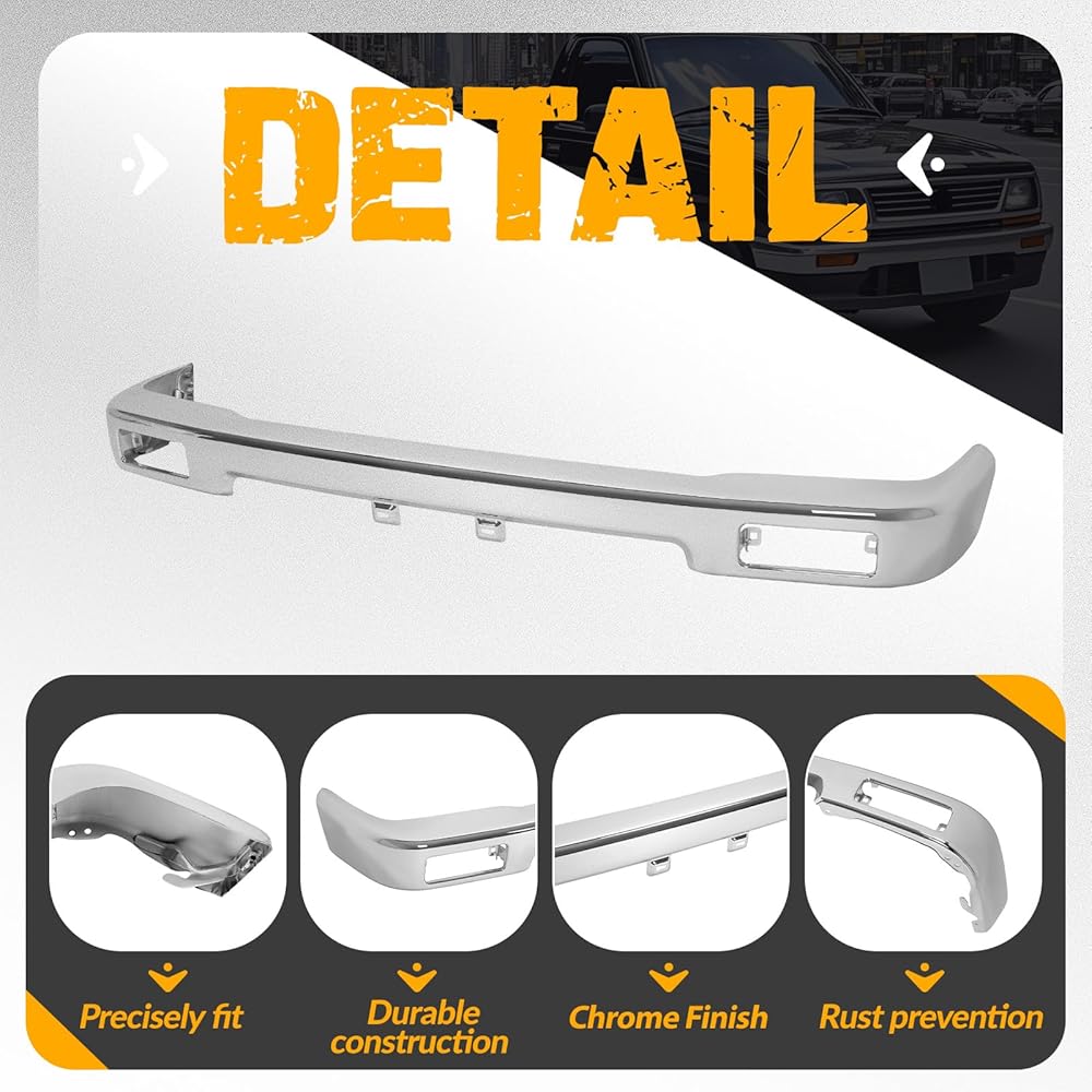 طلاء الكروم: شريط وجه المصد الأمامي مصنوع من الفولاذ، ومصمم باللون الفضي ويتميز بسطح نهائي من الكروم. فهو يضمن أداء طويل الأمد ويعزز قوته العالية ومتانته. شريط وجه المصد الأمامي مزود بلوحة ترخيص وفتحات لمصباح إشارة الانعطاف