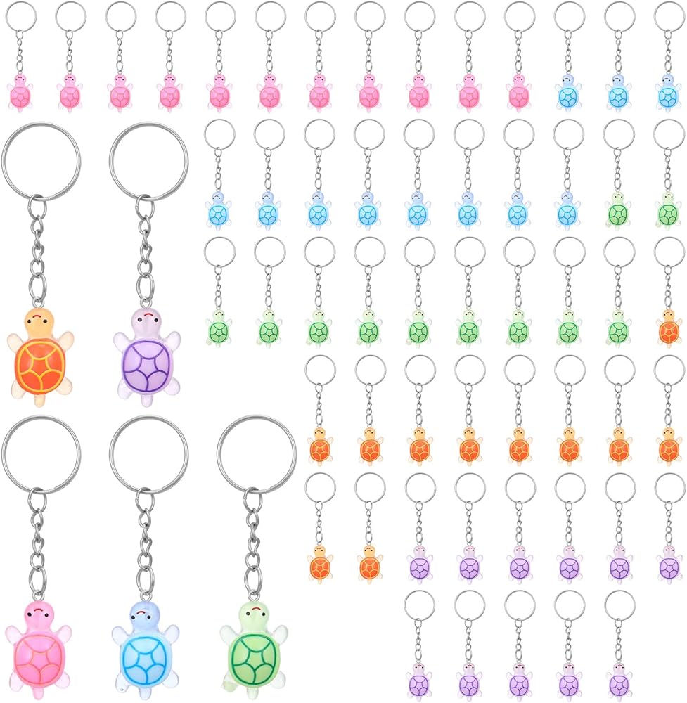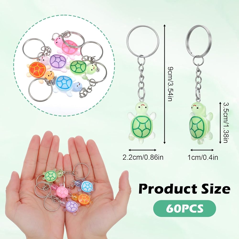 • 【Package Content】The package includes 60 pcs 5 colors mini turtle keychains, with 12 pieces per color on average. The large quantity meets needs for bulk scenarios, birthday party favors, or under the sea theme event supplies—no need to purchase additional accessories, covering both small and large-scale use