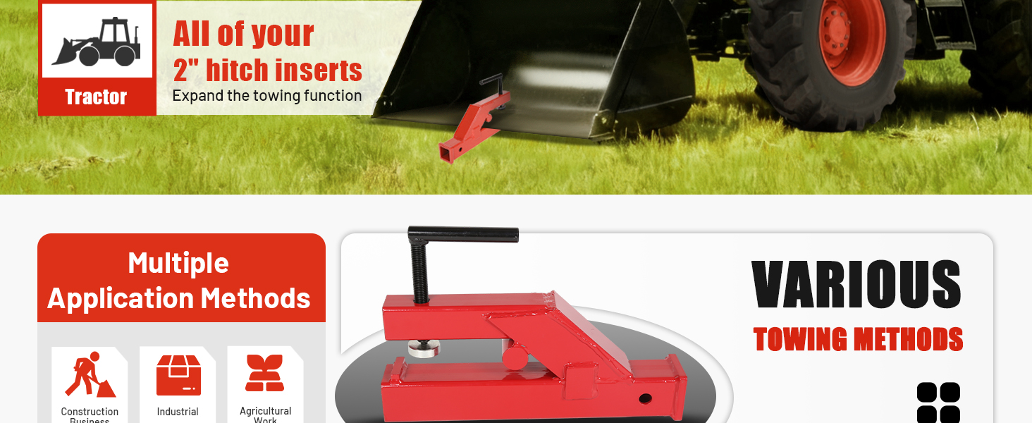 الملاءمة: محول وصلة المقطورة عبارة عن أجزاء عالمية للربط، متوافقة مع جميع حشوات وصلة الجر مقاس 2 بوصة.. يمكن تطبيقه على الأعمال الزراعية والأعمال الصناعية والبناء