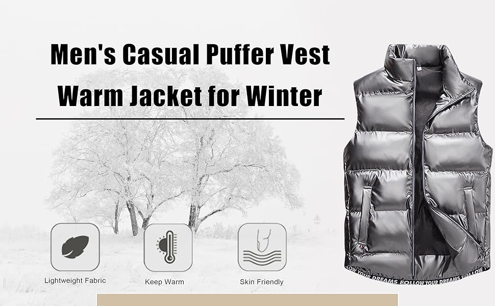 تصميم كاجوال: تتميز هذه السترة الرجالية المنتفخة بياقة واقفة للحماية من الرياح. سحاب لسهولة الارتداء والخلع، وجيبين على كلا الجانبين لحماية يديك وتخزين مقتنياتك الشخصية. تصميم بدون أكمام لسهولة الحركة والراحة