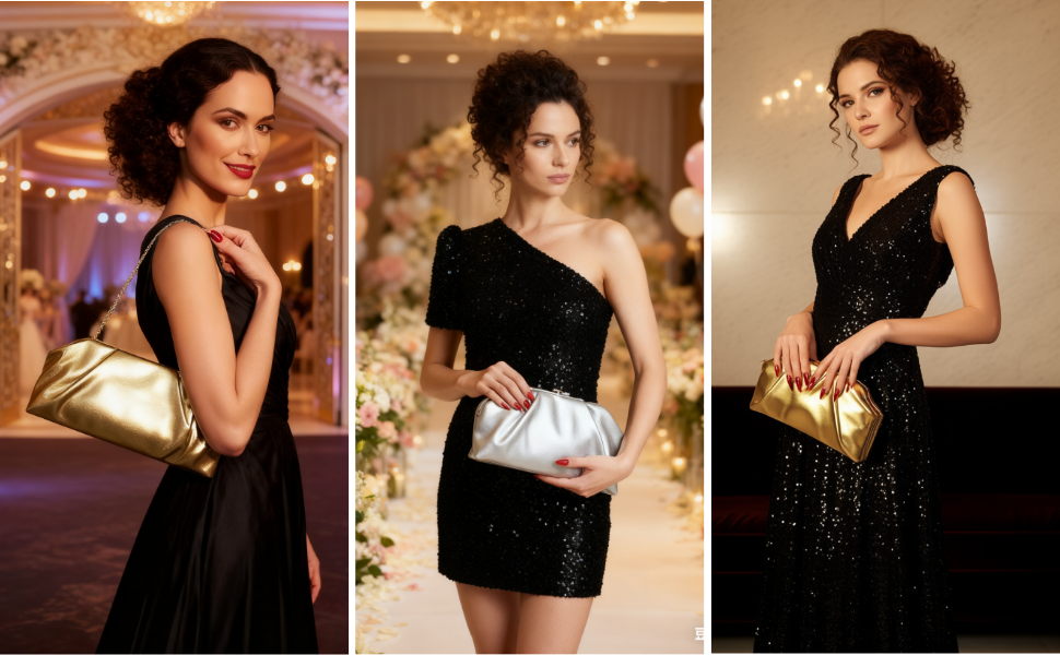 MYHOZEE Clutch Purses for Women Formal Soft Pleated PU Wedding Clutch Elegant Evening Bag