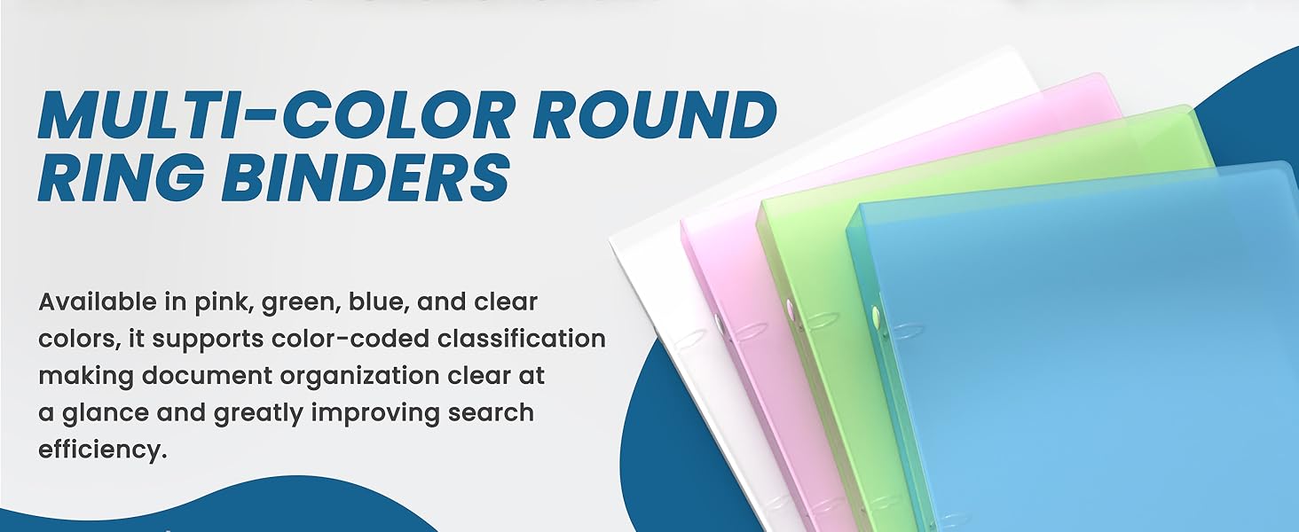 【3 حلقات تثبيت】8 عبوات من المجلدات بما في ذلك الوردي والأزرق والأخضر والأبيض (2 من كل لون). يدعم ترميز الألوان لسهولة التنظيم وإدارة الملفات بشكل واضح. كل مجلد يحمل ما يصل إلى 1 بوصة سميكة، ويستوعب 175 ورقة كحد أقصى. يدعم أحجام الورق حتى 8.5 × 11 بوصة.