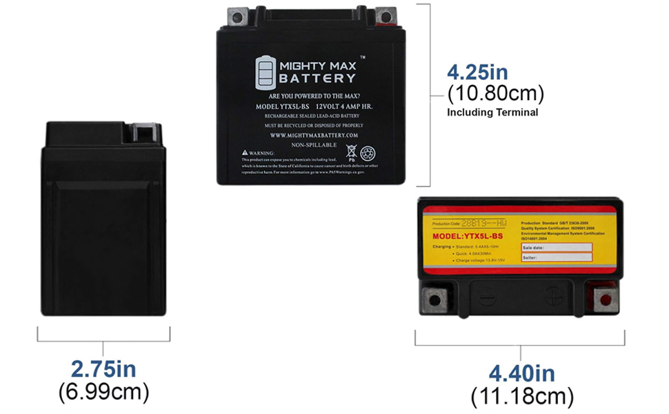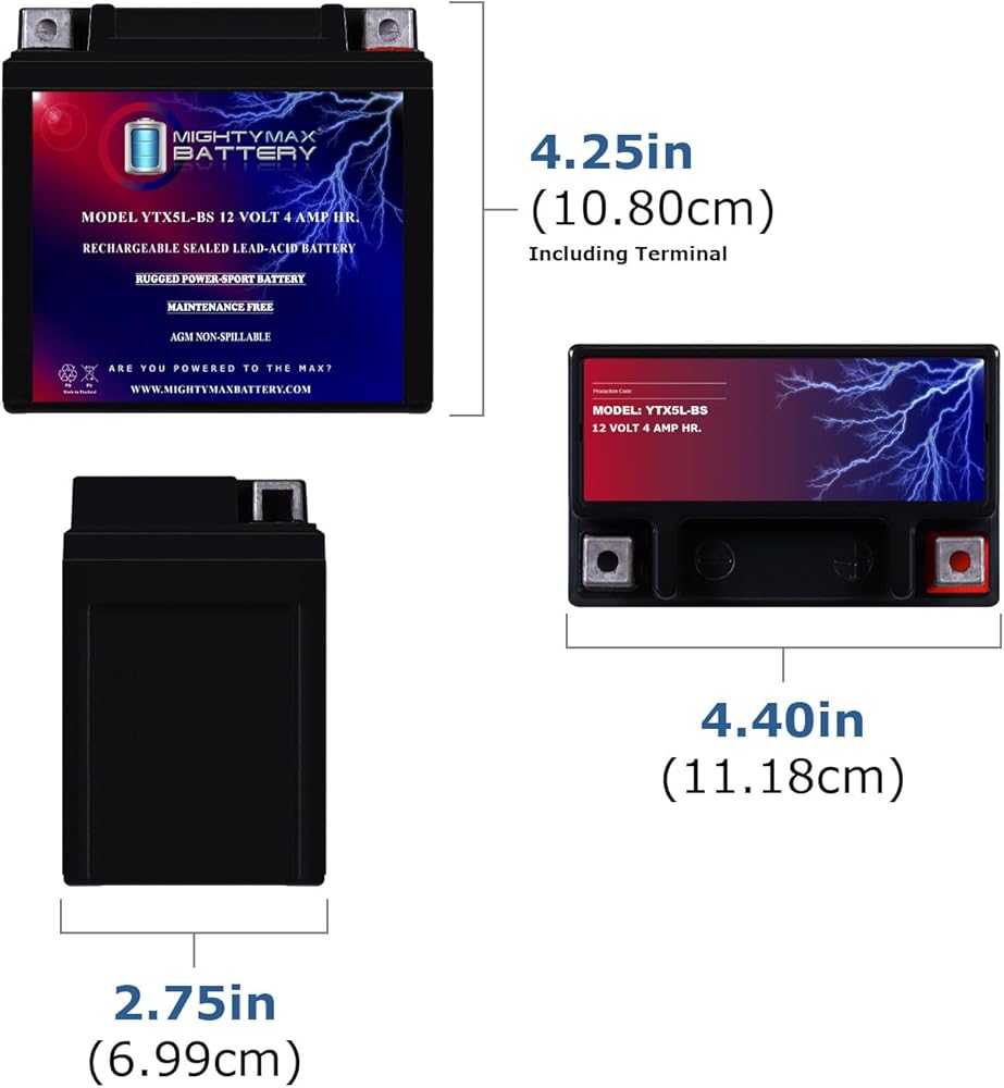 • YTX5L-BS عبارة عن بطارية حمض الرصاص المختومة (SLA) بقدرة 12 فولت 4AH 80 أمبير (CCA)