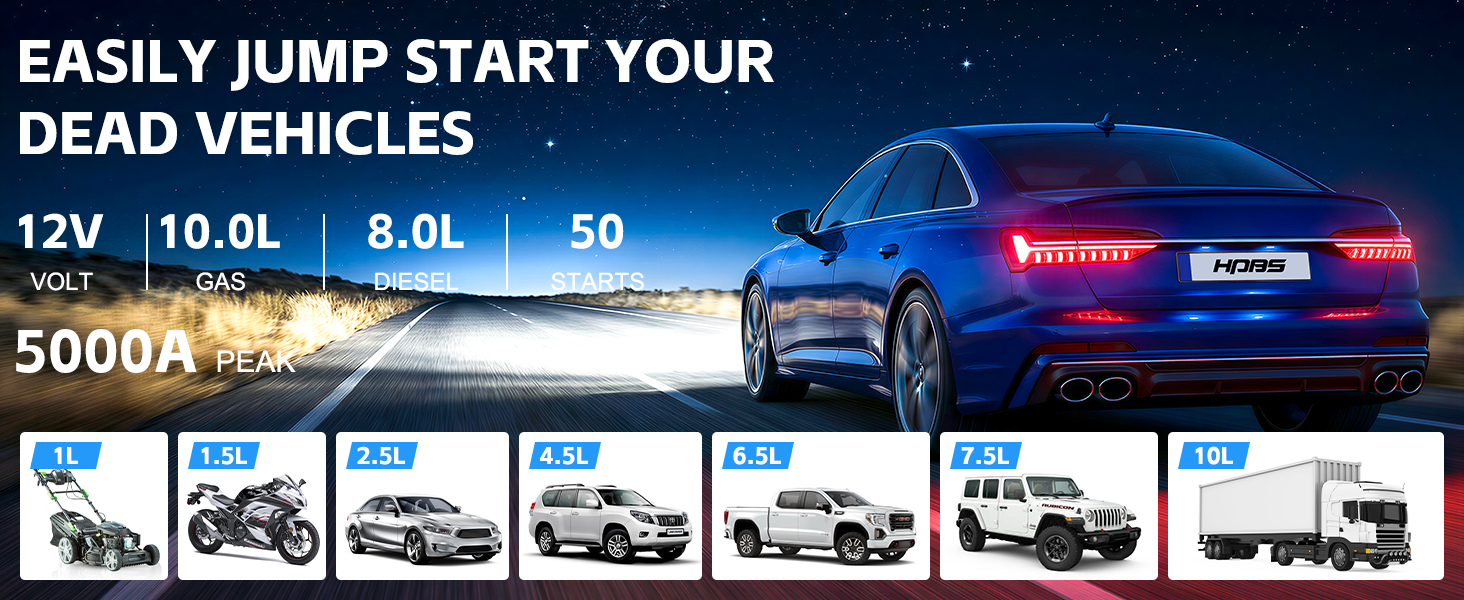 【بادئ تشغيل قوي】يعمل جهاز تشغيل بطارية السيارة المحمول بقدرة 5000 أمبير على إعادة تشغيل المركبات الميتة 12 فولت على الفور، ويدعم ما يصل إلى 10 لتر من البنزين ومحركات الديزل 8 لتر. باستخدام زر "RST"، فإنه يعمل على تشغيل حتى أقل جهد كهربائي للبطارية. مشحون بالكامل، ويوفر ما يصل إلى 50 نقطة انطلاق ويعمل بشكل موثوق في درجات حرارة تتراوح من -4 درجة فهرنهايت إلى 140 درجة فهرنهايت، مما يضمن الثقة في كل من الصيف والشتاء.