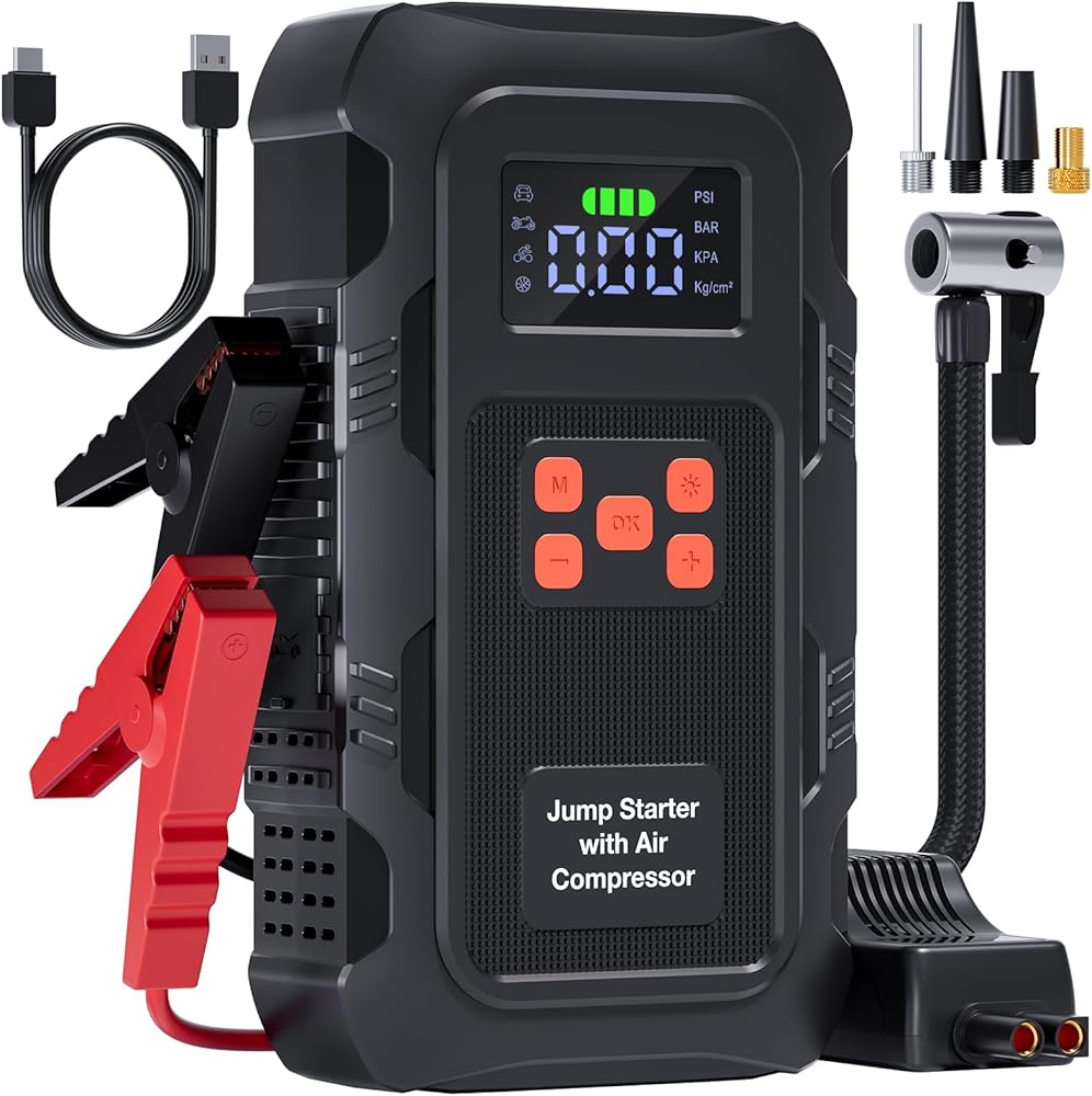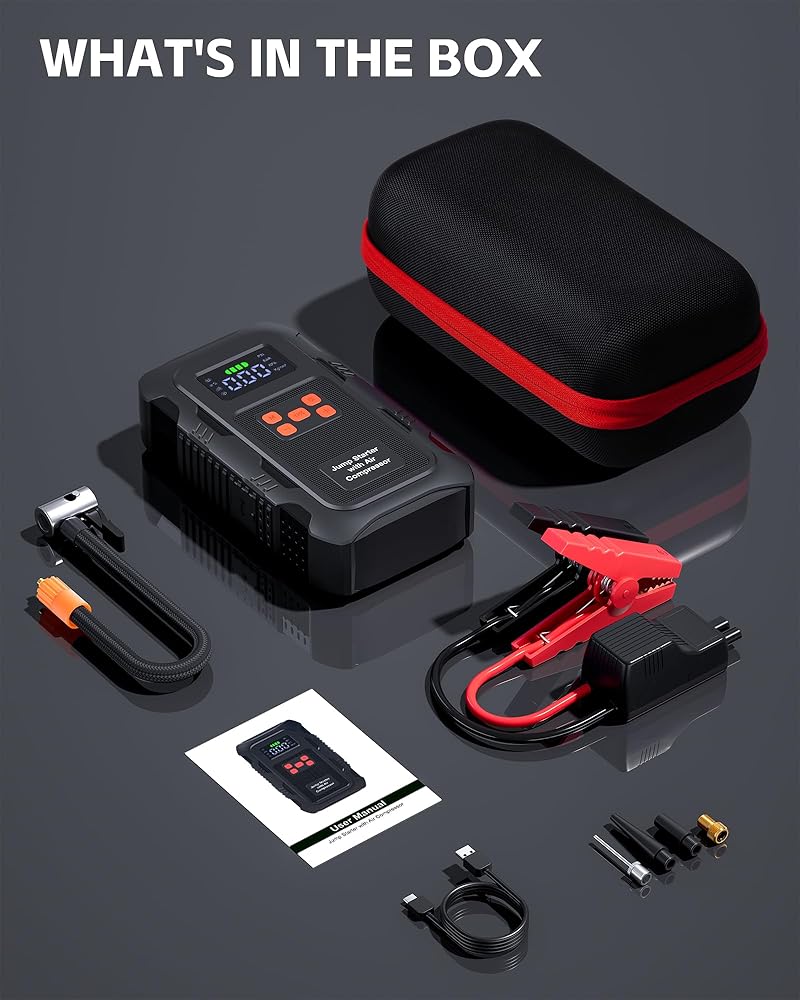 【حزمة كاملة وضمان لمدة 24 شهرًا】تتضمن العبوة: 1 × مشغل قفز مع ضاغط هواء، 1 × كابل توصيل ذكي، 1 × كابل شحن USB من النوع C، 1 × صندوق تخزين، 1 × أنبوب مضخة، 4 × فوهات هواء، و1 × دليل مستخدم. استمتع براحة البال مع ضمان لمدة 24 شهرًا ودعم العملاء على مدار الساعة طوال أيام الأسبوع لتلبية جميع احتياجاتك.