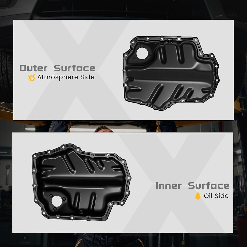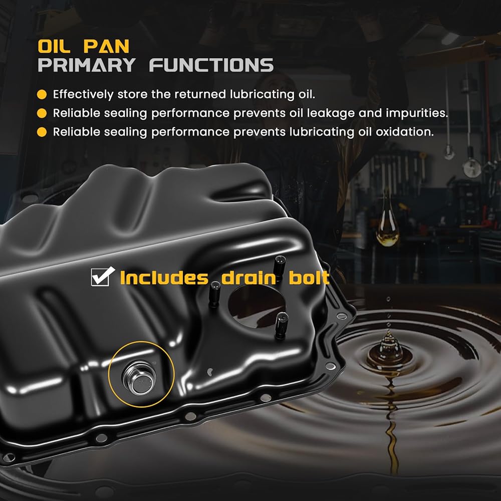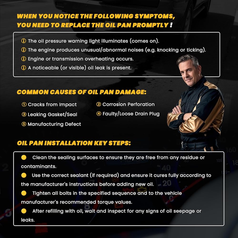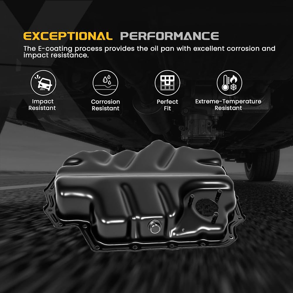 • [أداء استثنائي]: وعاء الزيت مصنوع من مواد فاخرة، ويتميز بهيكل قوي مع قوة ضغط متميزة، وأداء مخفف، ومقاومة للتآكل. وهذا يقلل بشكل فعال من خطر التشقق أثناء تشغيل السيارة.