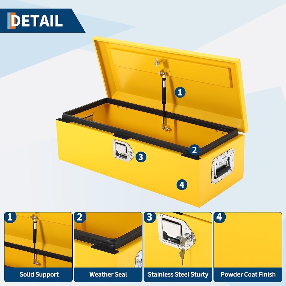 Reinforced Durability & Safe Operation: Built with a robust steel structure, safety hinge, and gas strut for smooth, controlled lid opening and closing. The textured orange peel finish adds extra durability and a waterproof seal keeps contents dry in any environment.