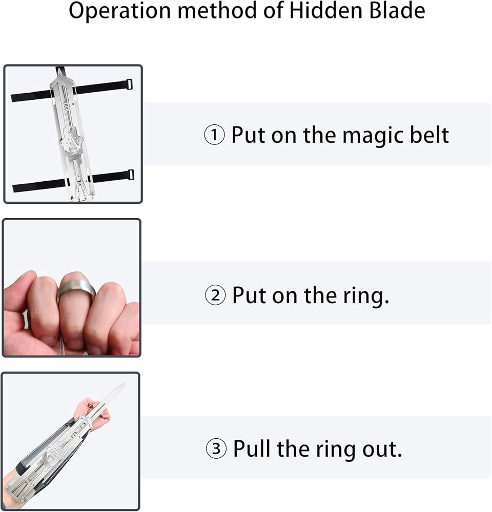 Myhiddenblade Metal Blade Assassin's Hidden Blade Assassin's Creed شفرة مخفية قصب سيف سكين مخفي فضي أسود البرسيم