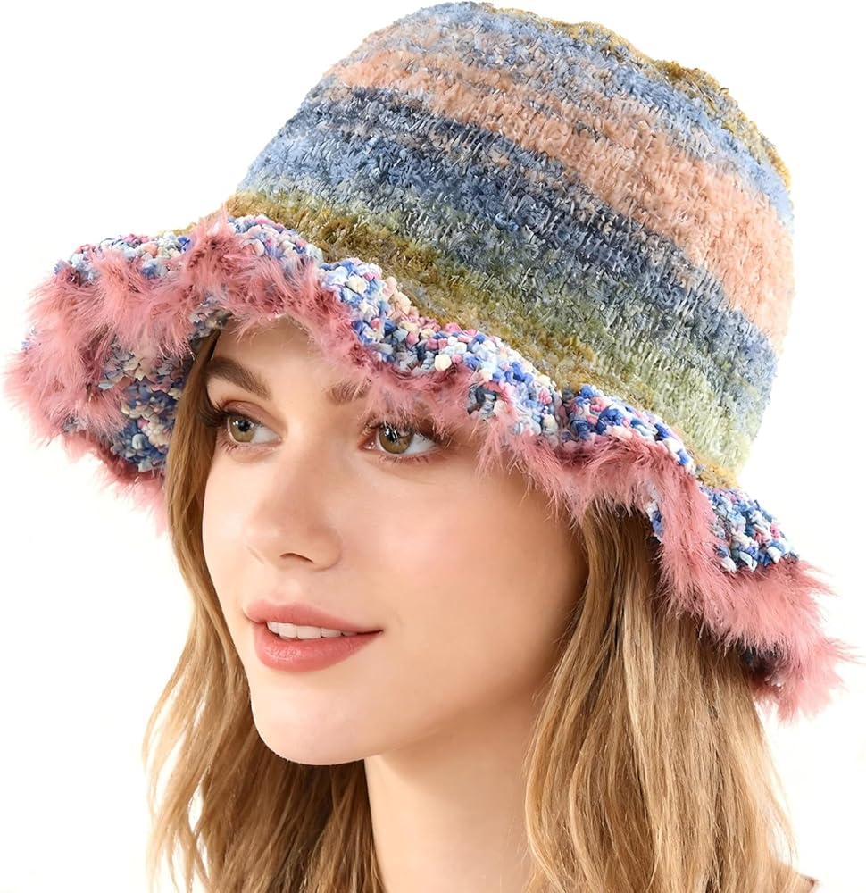 Busnos Crochet Bucket Hats for women Fashionable Womens Beanie Cute Winter Hats Knit Hat for Women