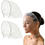Qiansail 2Pcs Mesh Veil Headband Bridal Lace Veil Fascinator with Rhinestone Headpiece Wedding Hair Accessories for Women