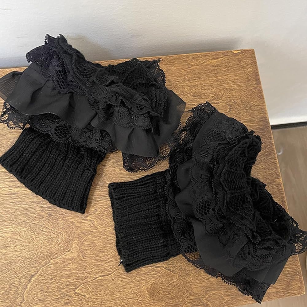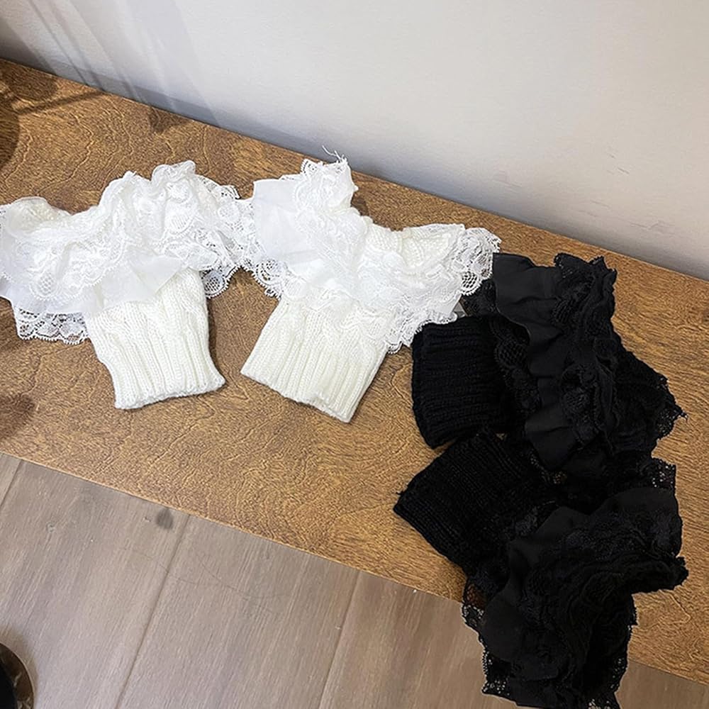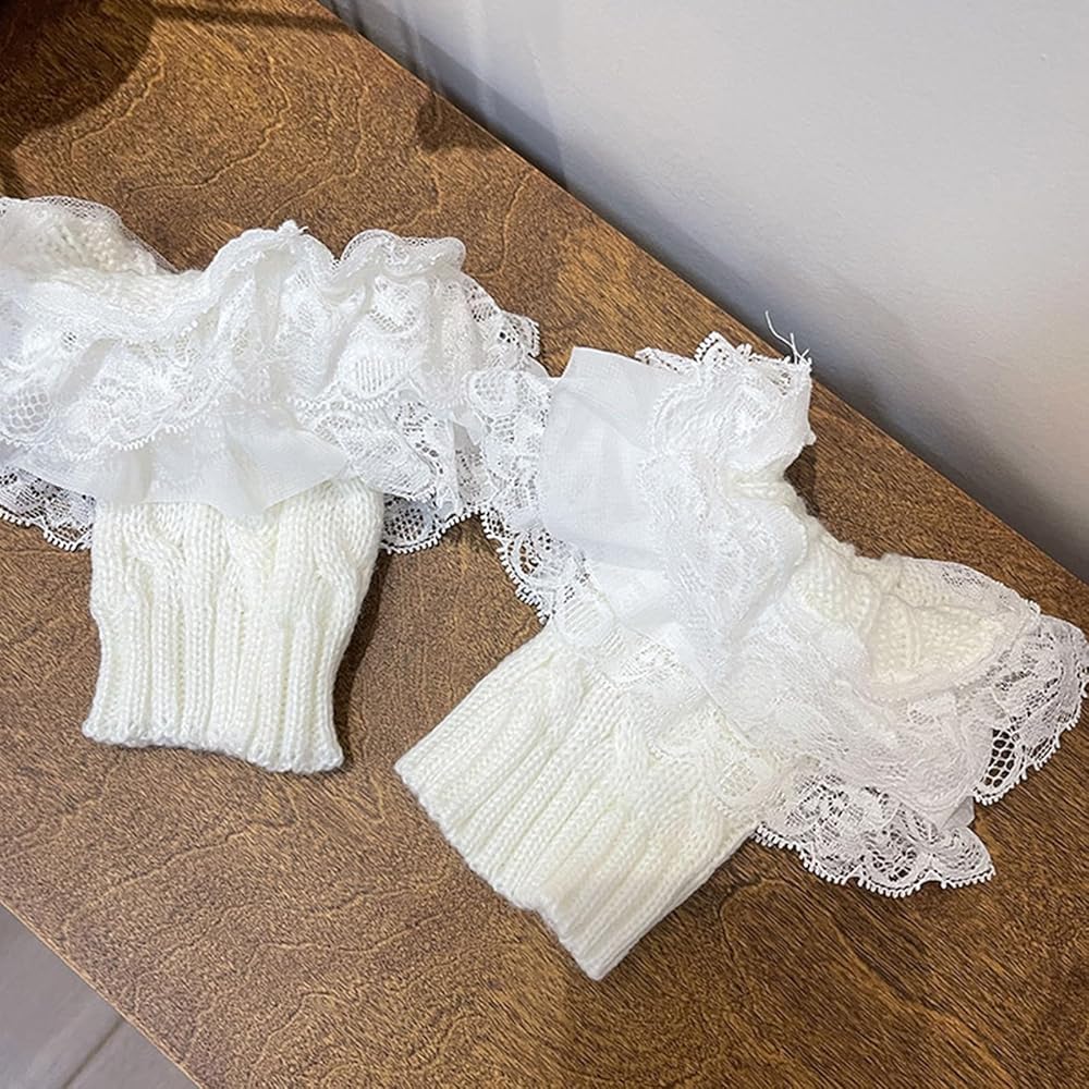 زوج واحد من أساور أكمام الحذاء من الدانتيل المطاطي لتدفئة الساق، جوارب علوية للنساء، جوارب بأصفاد كروشيه بلون سادة