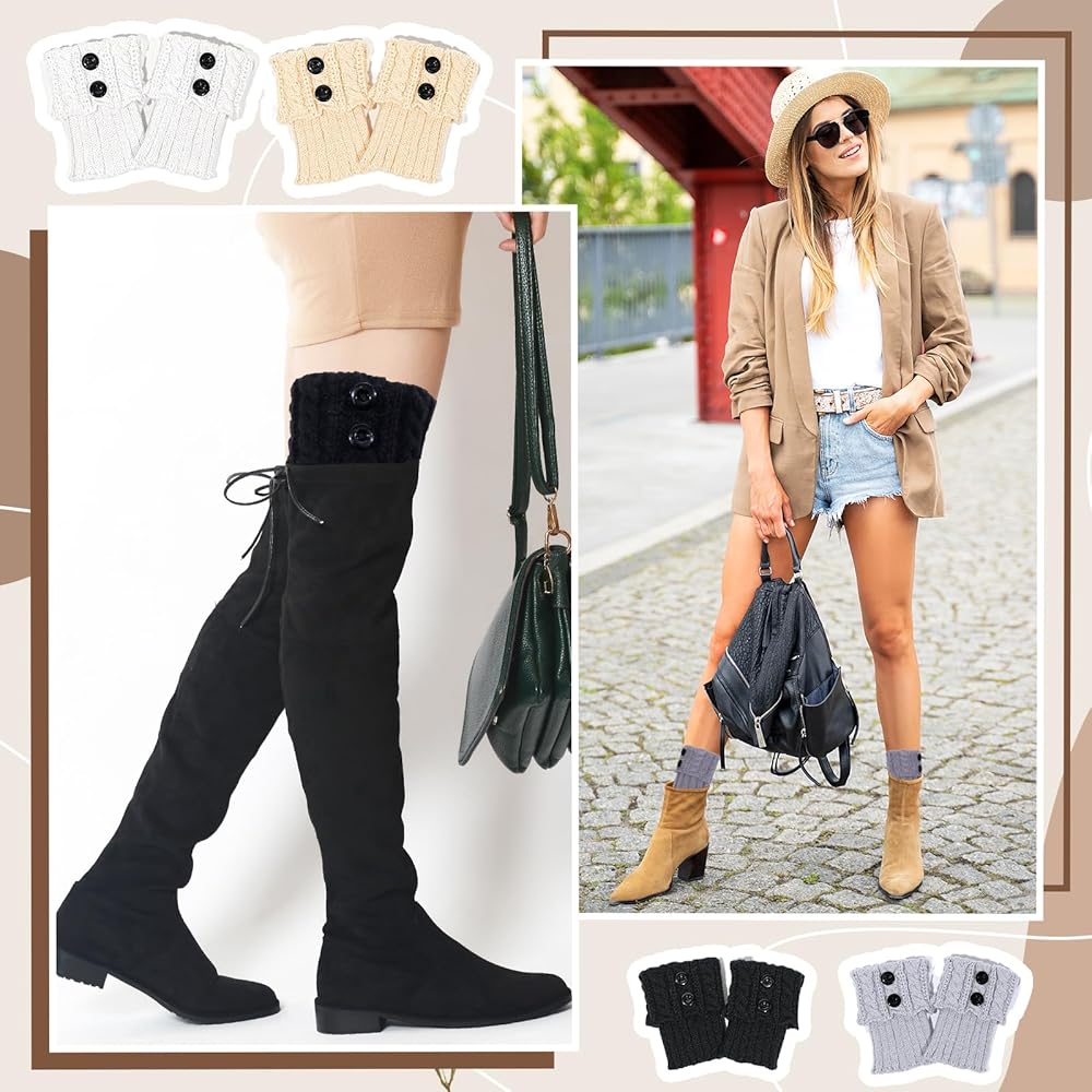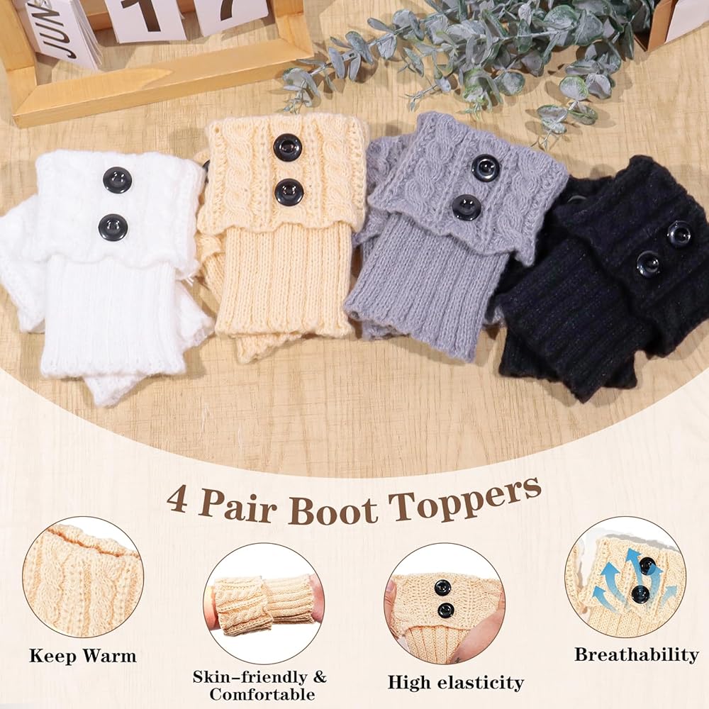 Ⅰ.4-Pairs Warm Value Set: You will receive 4 pairs of cozy short leg warmers in one package. This collection offers excellent value and variety, perfect for mixing and matching with your different boots and outfits throughout the season. It's also a thoughtful and practical gift idea for friends and family during the holidays.