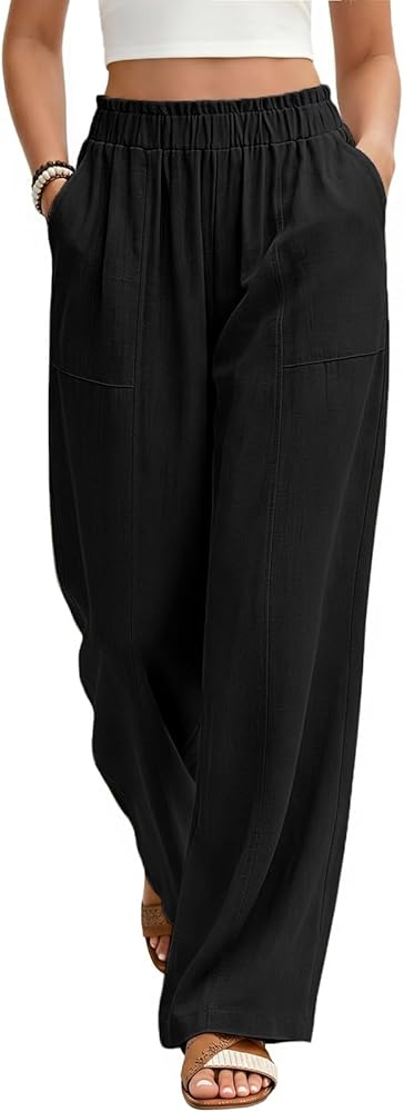سراويل نسائية من الكتان الناعم: سراويل صيفية واسعة الساق ذات تصميم فضفاض مصنوعة من 70% فيسكوز و30% كتان. توفر السراويل الكتانية المتدفقة الراحة طوال اليوم للسراويل خفيفة الوزن التي تلبي احتياجات النساء. تحافظ مادة الكتان على انتعاشك، مما يجعلها سراويل كاجوال للشاطئ، بينما يناسب التصميم الجذاب سراويل بالازو.
