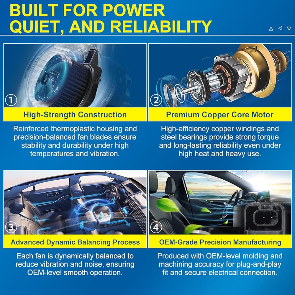 【تحسين تدفق الهواء والراحة】يساعد محرك منفاخ التدفئة والتهوية وتكييف الهواء (HVAC) الجديد على التخلص من إخراج الهواء الضعيف والمراوح المزعجة ودرجة حرارة المقصورة غير المتناسقة. يستعيد تدفق الهواء القوي من خلال أنظمة التدفئة وتكييف الهواء، مما يحافظ على راحة منزلك طوال العام